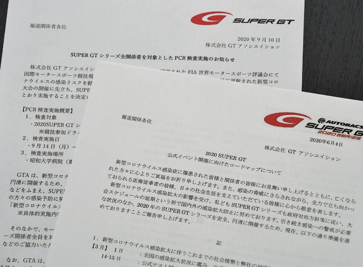 られており、これらのグループも、可能な 限り少人数の「サブグループ」へとさらに分 割することが求められている。 これらは“ソーシャルバブル”として一般 に知られる用語と概念を共通にしており、 グループ/サブグループ間での交流を最小 限に抑え、交流する場合は、適切な緩和手 段(マスク着用/手洗い衛生/アルコール ベースの手拭きなど)が要求される。これら が改訂版の付則S項が示す大意だ。 開催に先立って行われるべき措置 富士スピードウェイで開催されるスーパ ーGT第5戦に向けて、関係者に対して PCR検査が要請されたことは既に複数のメ ディアで報道されている通りだ。 これはGTアソシエイションが発表した リリースにもある通り、スーパーGTがFIA インターナショナルシリーズとして開催さ れるという認識に則り、改訂版付則S項の 「2.1(1)」に明記されている指示に対応した 措置だと考えられる。 付則S項の当該部分を以下に抜粋する。 更新された国際モータースポーツ競技規則「S項」。その骨子とは シンプルに整理された9月1日更新版。JAFからは日本語訳「COVID-19行動規則」もリリース。 Headline モータースポーツ話題のニュース速攻Check! フォト/WTCR、Eurosport Events、DPPI、JAFスポーツ編集部 レポート/JAFスポーツ編集部 新 世界のビッグレースの中では、かなり遅く開幕したFIA 世界ツーリングカーカップ(WTCR)。9月12~13日に 行われた開幕戦、ベルギーのゾルダー戦では、決勝後の インタビューエリアに対人距離を確保した空間が設け られ、入場時における手指消毒も徹底されていた。 4