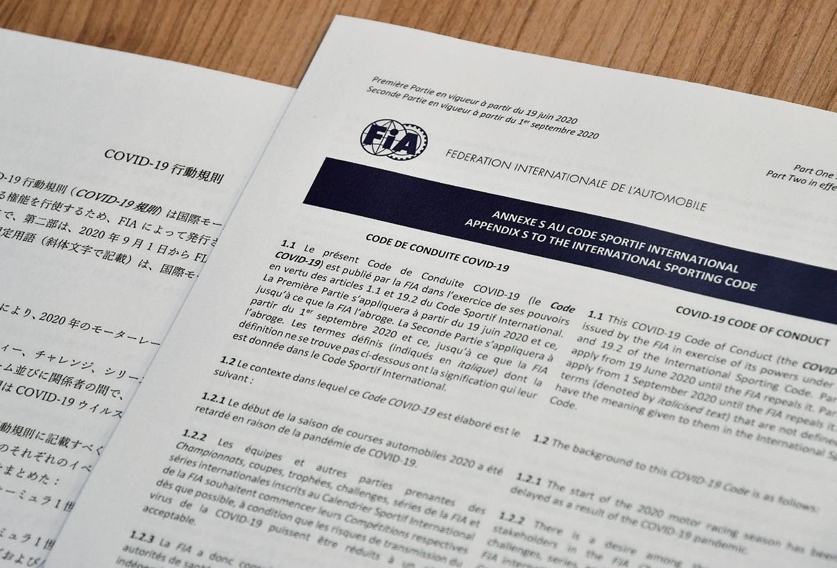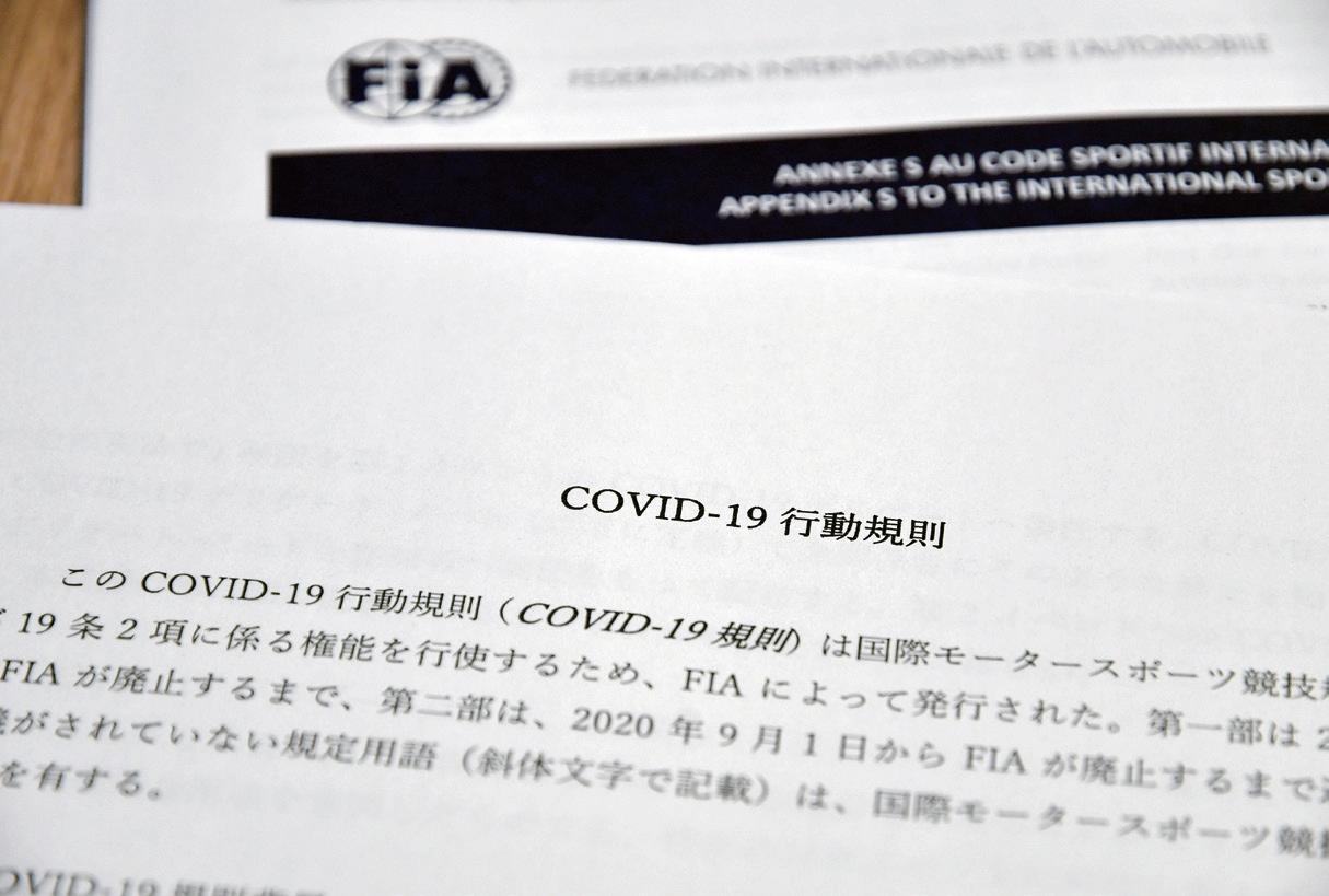 6月19日、FIAは「FIA International Sporting Code Appendix S(FIA国際モータースポーツ競技規則付則S項)」に 「COVID-19行動規則」を示し、9月1日にはその改訂版を発表。この改訂版については日本語訳がJAFモータースポー ツホームページに公開されているので、モータースポーツ関係者なら是非とも一読して欲しい。