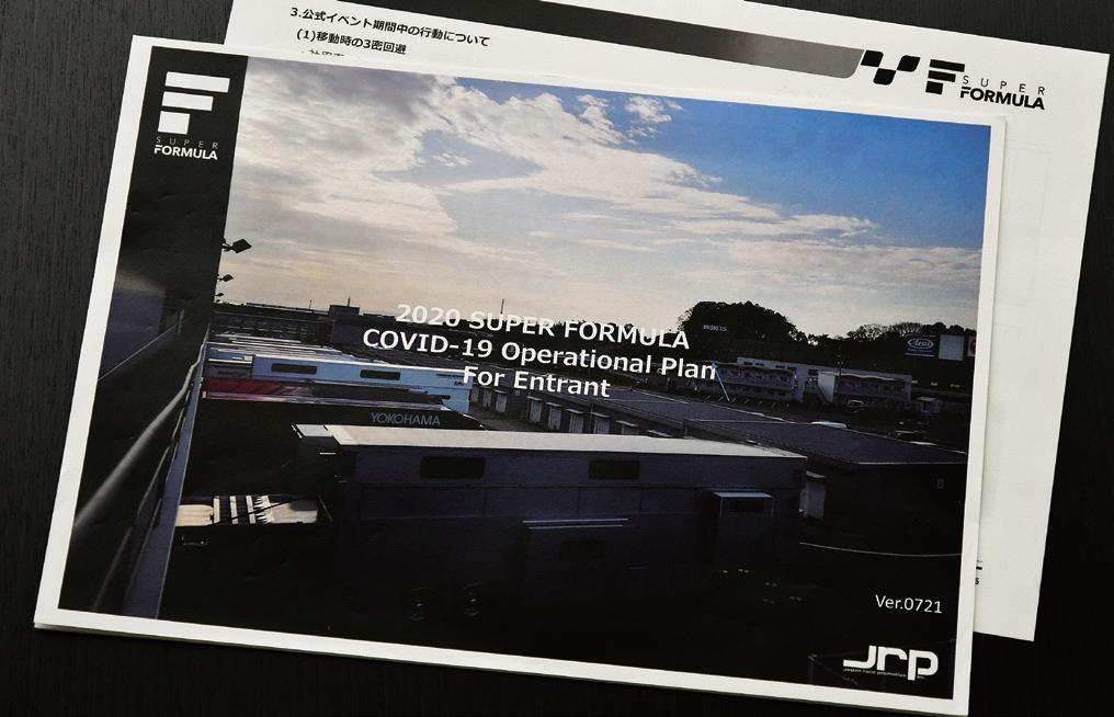 を義務付けたと同時に、行動履歴の把握を求めた。 さらに、サーキットへの移動や大会中のサーキット外 開幕戦もてぎのウィナー平川亮選手。メディアによる選手へのインタ ビュー取材などもソーシャルディスタンスを確保して実施された。 参加者向け「COVID-19オペレーショナルプラン」発行 ピット・パドックには“ソーシャルバブル”の概念を採用 イベント中のピット・パドックには、自チームエリアを柵等により明確にする 事を明記し、他社スタッフへのクラスター伝播防止のため、各スタッフの行 動はできるだけ自チームエリア内に収める事を指示。これはいわゆる「ソー シャルバブル」の概念を採用した施策で、併せて、最大収容人数を「半径 1.5m/1人」のディスタンスが確保可能な人数としている。 JPRはスーパーフォーミュラ参加者を対象とした「COVID-19オペレーショナルプラン」を発行し ており、そこでは、JAFが発表した「基本的な感染対策のあり方の例」を基準に「モータースポーツ は基本的に屋外スポーツで対人接触がある競技ではないが、従来の運営方式の場合、瞬間的な密 接シーンがあり、それらを工夫することで、新型コロナウイルス感染拡大を防ぎながらのイベント 運営が可能であると考える」という基本方針を示している。 11