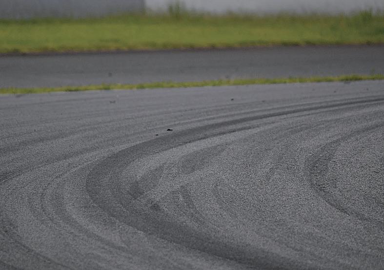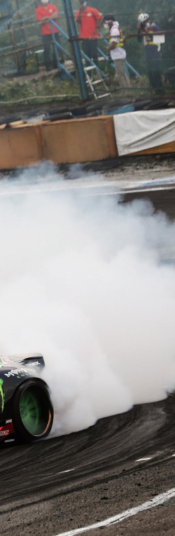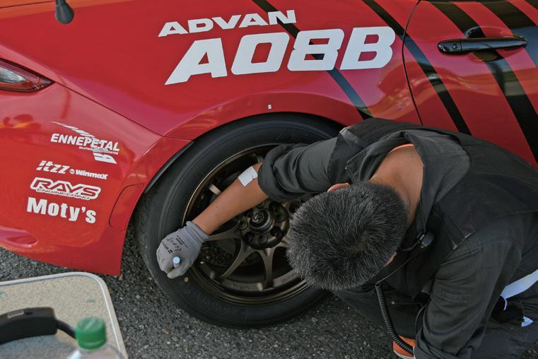 ため、空気圧を指定より低くセットする手法も珍しく なくなってきている(落としすぎるとタイヤが脱落する ため、D1グランプリでは空気圧の下限をレギュレーシ ョンで規制したほどだ)。 タイヤのグリップ力はスタートダッシュの有利さに 直結し、コーナリングスピードも高まる。「先行」で相 手との距離を引き離したり、「後追い」で追い詰めたり するのは高いトラクション性能があってのこと。