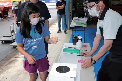これに関しては、各チー ムとも工夫をしているよう で、例えば、同じ号車を担 当するスタッフが、同じ移 動車両を使用しないように している。こうすれば万一 感染者が出て、濃厚接触者 も感染者同様に参加できな くなったとしても、残った メンバーで担当車両を走ら せることができるからだ。 このように、参加者側も実 際のレースオペレーション に影響が出ないよう行動を 律していた。 ピット・観客エリアの「バブル」化 一方、サーキット内の行動については、欧米のプロ スポーツやFIA国際モータースポーツ競技規則付則S 項「COVID-19行動規範」にもあるように、JRPは「ソ ーシャルバブル」という考え方を導入した。 各チームのピットガレージからパドック部分の各チ ーム駐車場までを一つの「バブル」と考え、その領域を ポールパーテーションで仕切る事で構築。そのエリア 内からできる限り出ないようにすることで、人と人と の不要な接触が避けられ、もし感染者が出たとしても 他チームへの伝播を避けられる、というわけだ。 また、いかなる場合でも、作業中のピットガレージ のシャッターは50cm以上開放しておくこと、ピット 裏のエンジニア用作業テントなどでも飛沫感染対策の 仕切りを設けることなどが求められている。 さらに、サーキット内では観客と関係者の行動エリ 日曜の1デイ開催にレースフォーマットが変更され、開幕戦から観客を受け入れたスーパーフォーミュラ。JRPとしては、 従来型のグリッドウォークやピットウォークは、主催者の要望がなければ実施せず、ドライバーサイン会やステージイベ ントも実施しない方針とされ、代わりにオンライン配信でファンイベントを実施した。 北ゲートで最初に入場した際に写真のリストバンドを装着。こ れが今大会におけるレース関係者を示すアイコンとなり、係員 が接触しなくても属性を認識できるようになっていた。 ソーシャルディスタンスを確保してレース観戦を楽しむギャラ リーの皆さん。それぞれのスタンドでは、対人距離確保を注意 喚起するプラカードを持った係員が巡回していた。 三密の回避はメディアの動きにも適用された。予選や決勝後に 行われる記者会見は限られたメディアを除いては参加できず、 スーパーフォーミュラ・ライツでも適用された。 8月15日のFIA世界耐久選手権(WEC)ベルギー大会に参戦し たドライバー3名が特例措置により本大会に参戦できることに なったが、キャンピングカーを用意して自己隔離した。 今季はスーパーフォーミュラ・ライツに戸田レーシングから参 戦する名取鉄平選手。今大会ではSFへの参戦機会に恵ま れたが、灼熱の会場環境を考慮してSF参戦を見合わせた。 決勝スタート進行において、自身のグリッドポジション付近で 乗車を待つ小林可夢偉選手。気温と湿度が猛烈に高かった 状況にも関わらず、フル装備の出で立ちでスタートを待った。 スーパーフォーミュラ 5か月遅れの開幕戦 開幕戦ツインリンクもてぎの開催中は、レース関係者は北ゲー トが専用入口とされ、一般の施設利用者とは別の動線を設定。 入場直後の別の場所で手指消毒や検温を実施した。 12