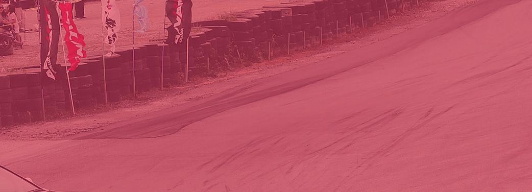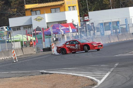 ストレートから1コーナー、続くS字コーナ ーといった組み合わせになることが多い。 ドリフト走行は「カウンターステアを当て たコーナリング」だと思われることも多い。 しかし、ドリフトの醍醐味はコーナーの“進 入”にあり、グリップ走行からドリフト状態 への移行が難しいとされている。直進状態 からいかにドリフト状態に持ち込むか。そ れを「進入スタイル」と呼んでいる。 ドリフトの命題は、誰よりも高い車速で、 誰よりも手前から、そして誰よりも深い角