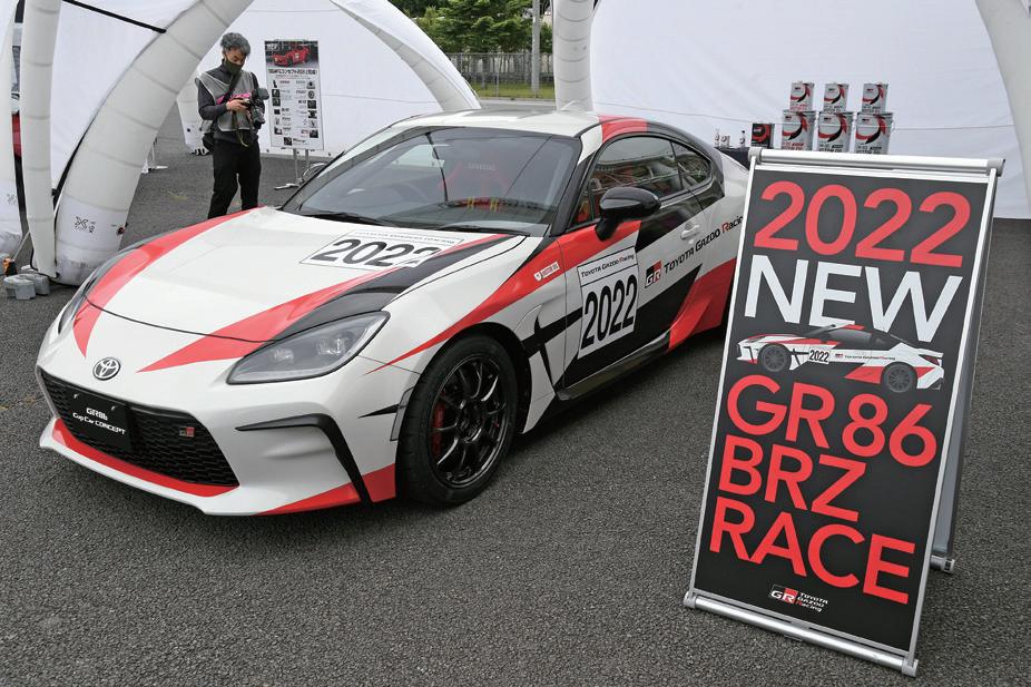 と併催された第2戦には20台が参加していた。 トヨタ自動車.GAZOO.Racing.Company GRブランドマネジメント部 杉浦宏哉部長 ヤリスカップは東日本/西日本シリーズで開催され、今季か らCVTクラスにシリーズポイントが付与された。参加者と参 加車両は「T.R.A.レーシングパスポート」に登録する必要が あり、その申請時にはゼッケン番号も登録申請し、車両搭載の エンジンには封印が必要となっている。また、ヤリスカップで は「フロントタイヤは、公式車両検査にてタイヤにマーキング を施されるまで、未使用の状態を保たなければならない」(つ まりフロントタイヤは新品)というタイヤ運用の規則が追加 された。ちなみに、ナンバー付きレースには「自動車登録番号 標付車両によるレース開催規定」により「参加車両が一般の 交通の用に供するのに適するのか否かの確認」が必須。ヤリ スカップでは「公式車両検査を受けて以降、レース終了後の 公道走行チェックを受けるまで、競技車両を当該サーキット の場外へ持ち出すことは認められない」としている。 86/BRZレースは2022年に大幅刷新 6月6日に富士スピードウェイで行われた「FUJI.86.STYLE.with.BRZ」では、新型GR. 86と新型BRZによる新たなワンメイクレースのコンセプトモデルが展示された。その 車両はキャリパーやローターが変更されており、来場者の大きな注目を浴びていた。 巻頭特集 15