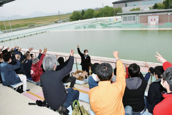 比嘉氏は「行政としては前例がないもの だったので、手探りの状態からスタートし ました」とプロジェクト立ち上げ当時を振り 返る。続けて「各競技団体の皆さんの協力 を得ながら、行政としては騒音問題と安全 性を重視してこの施設を整備しました。競 技団体の関係者も市役所の中にも、ここま でできると思っていなかった人は多かった と思います」と施設を見て感慨深く話して くれた。