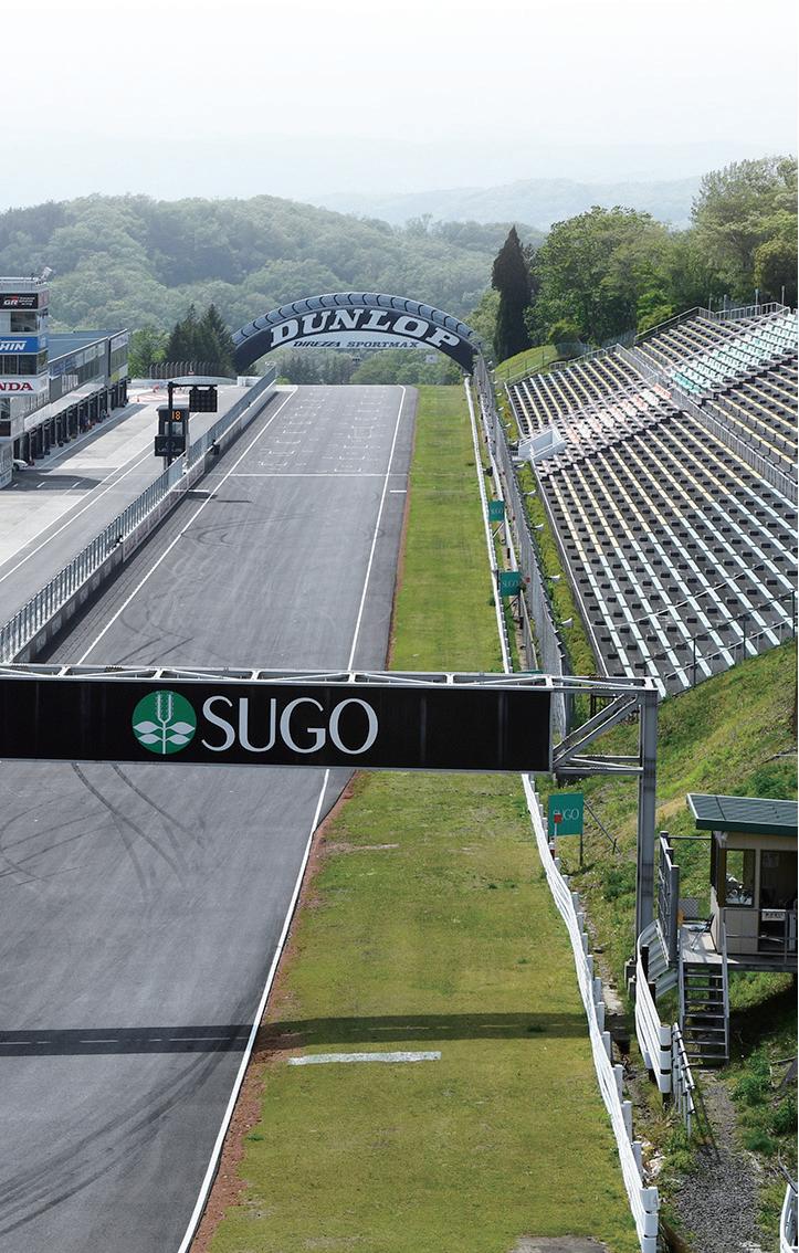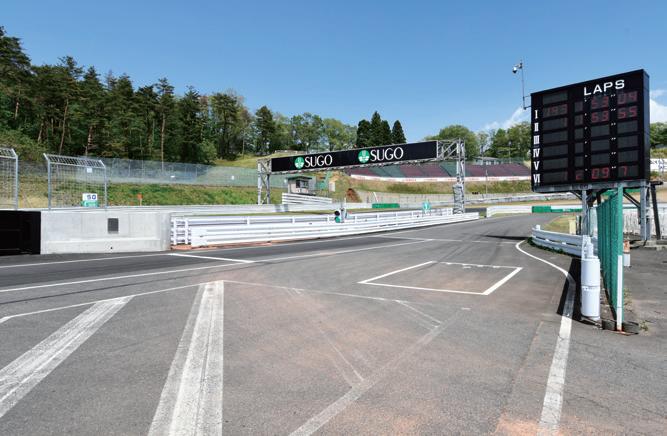 ットと呼ばれる最終コーナ ー寄りのピット、ならびに ピット上のゲストルームが 改築されていたことが挙げ られる。1ピットあたりの幅 は従来よりも80cm広げら れており、ピット作業エリ アの拡幅同様にエントラン トから好評であった。な お、1コーナー寄りの東ピッ トも、2021年のシーズンオ フに同様の改修が行われる 予定だ。 余談ながら、東ピットの 上にはゲストルームは設け られない計画だという。と ポーツランドSUGOが、オー プン以来2度目となる大掛かり な施設改修を行っている。しか し今回は1987年の改修時とは異なり、国 際レーシングコースの基本レイアウトを変 えていないのが特徴でもある。 最大の変更点はピットの作業エリアが 2m広げられたこと。それに伴いホームス トレートもスタンド方面に2m寄せられた ことだ。また、これまでは2コーナー先に