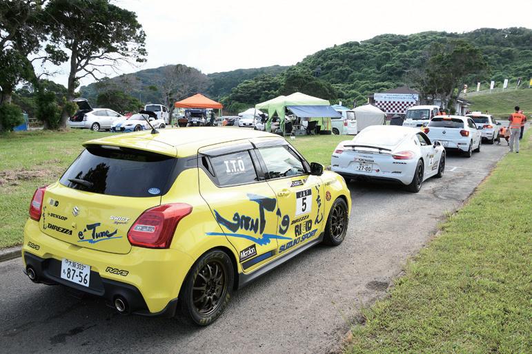 時期にATクラスができることが分かり、 AT車にも可能性がありそうだったので、 参加してみることにしたんです。 スイフトは土手啓二朗さんや喜多治人さ んがすでにノウハウをお持ちでしたし、足 回りはI.T.O.さんだったので、競技車両と してのパッケージは早く仕上がりそうでし た。年末に名阪スポーツランドでシェイク ダウンをしたんですが、MT車と同じくら いのタイムで走れて、結構イケるなという 印象がありました。コロナ禍でセッティン グをしっかり煮詰めることもできませんで したし、誰がどんなクルマで出てくるかも 読めなかったので、開幕戦のもてぎ南は出 たとこ勝負でした。コースが分かれるなん て情報も知りませんでしたからね」。 加速してくれない区間 「MTのジムカーナ車には乗ってません が、走りを見ていると、シフトタイミング が変えられるMT車と、機械任せなAT車 の違いはよく分かります。でも、それぞれ 一長一短がありますね。中でも、スタート についてはAT車の方が速いんですよ。タ ーボラグがない……というか、MT車がク ラッチを切って1~2速に入れている間 に、こっちはアクセル全開で3速ぐらいま でポンポンと上がっていきますからね。