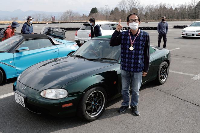 いのかなとも思い始めています。ボクが始 めたときも、うまくてクルマも速くて、毎 回表彰台に上がる常連さんがいました。日 紫喜(俊夫)さんとか篠原(賢爾)さんとか (笑)。舞洲に2年ぐらい出ていたときは日 紫喜さんがずっと1位で、なかなか上位に 行けず『もうええでしょ』と思うくらいで (笑)。でも、現在はボクらも上位争いがで きるようになったので、今度は自分がそう