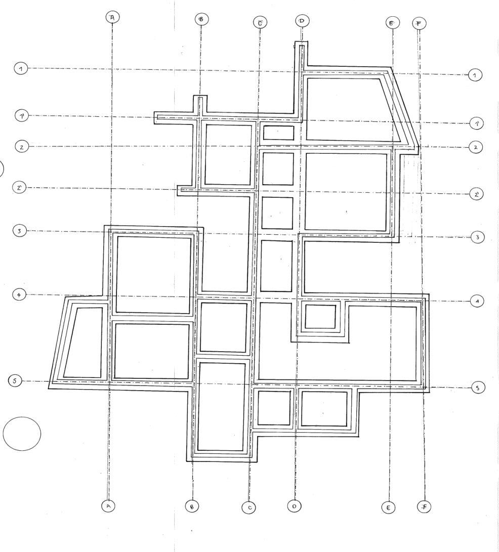 Bahareque Cimiento ciclópeoEl proyecto se conforma por dos plantas arquitectónicas , el primer piso esta escalonado en 3 cotas de nivel , inicialmente se encuentra el acceso que vincula directamente con el eje que organiza el proyecto , en la primera cota de nivel se encuentra el acceso , un jardín y una sala al exterior , que vincula con la sala estar ,en la entrada principal se comunica por medio de unas escaleras con la segunda cota , en la cual se ubican las escaleras del segundo piso , la habitación del adulto mayor , el baño privado de esta habitación junto a una sala al exterior , el baño de la zona social y la sala estar y en la parte posterior en la misma cota se ubica la zona de ropas junto a un patio y en la tercera cota vinculada con unas escaleras se encuentra el comedor con la cocina y el BBQ .