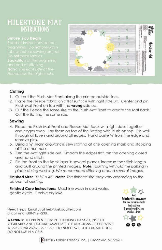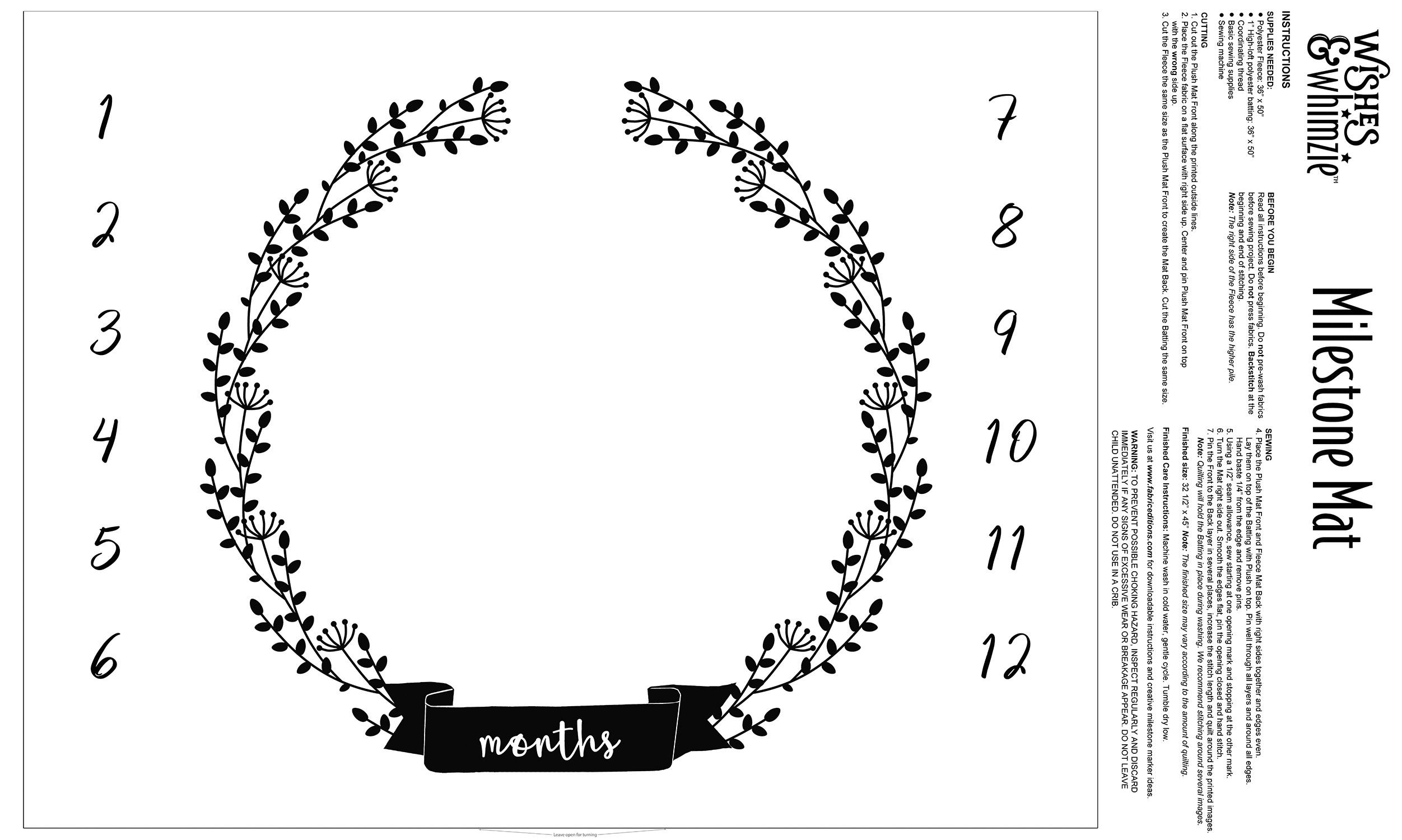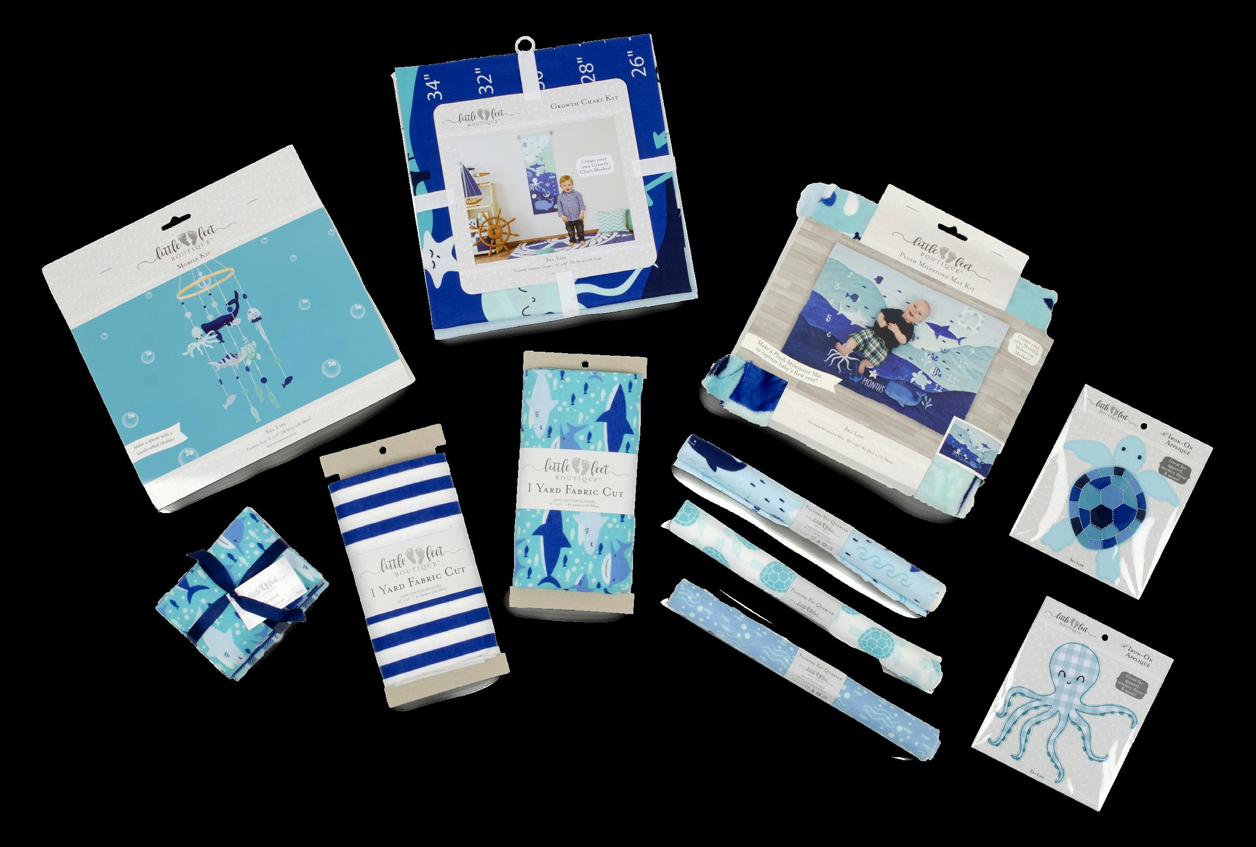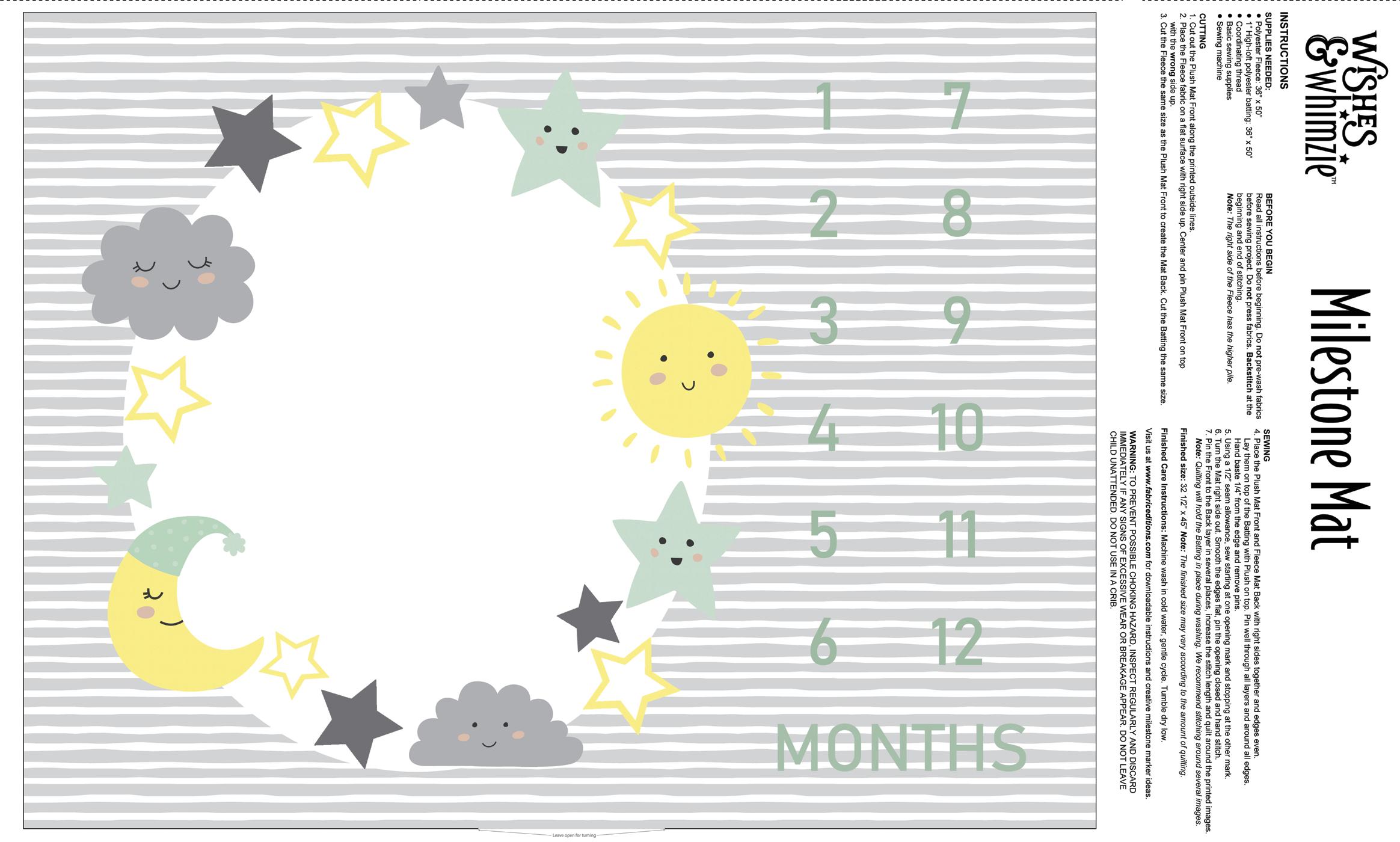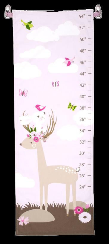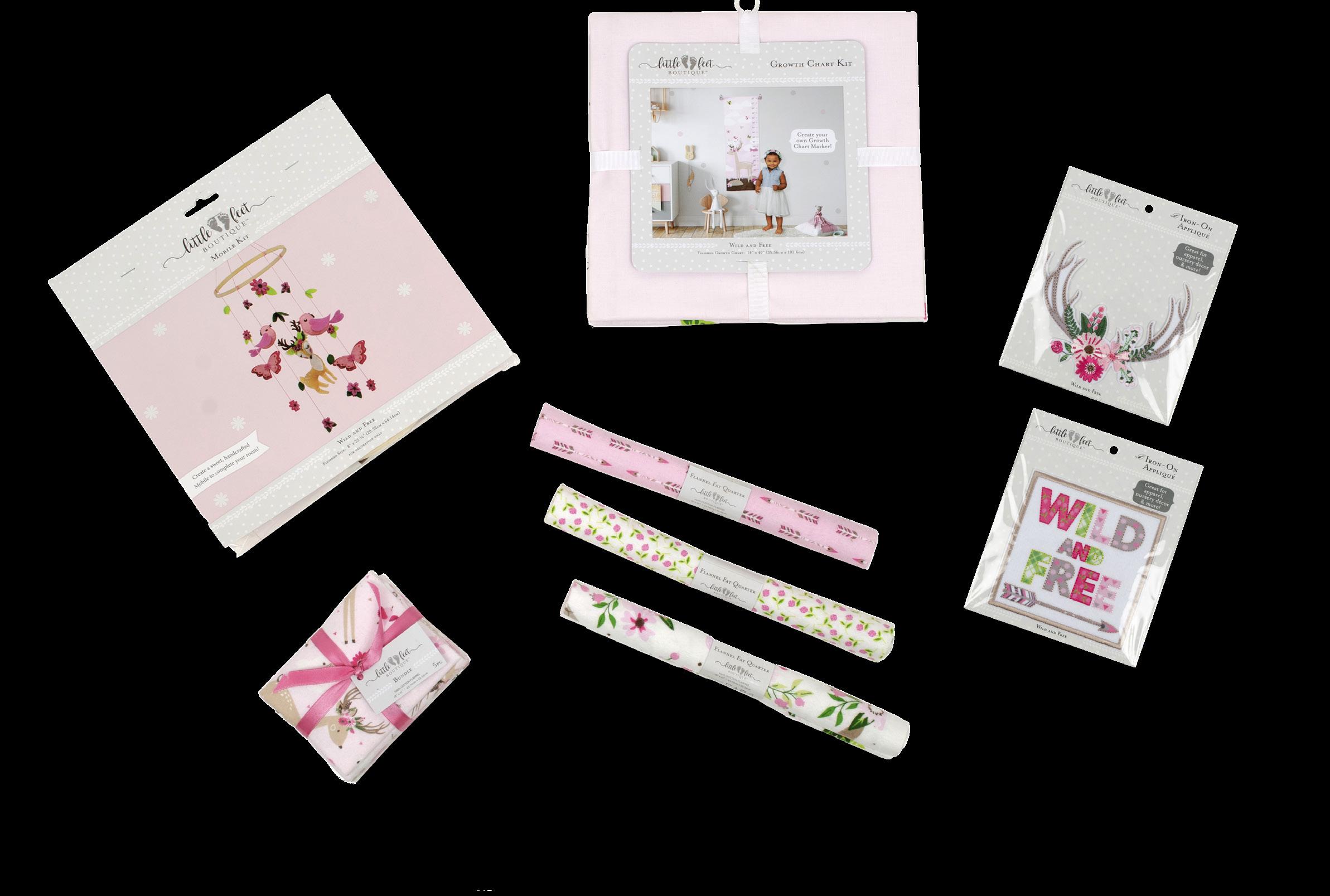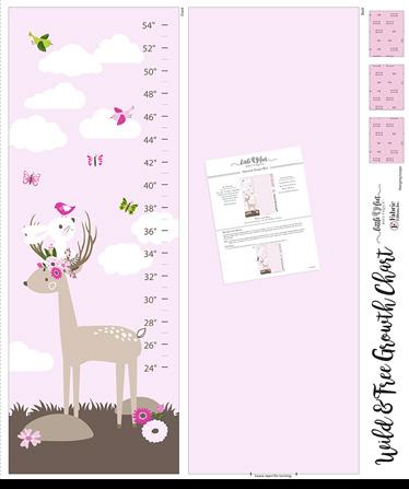 Each kit includes 36" x 42" (91.44cm x 106.68cm) 100% cotton printed panel with growth chart front, growth chart back and hanging loops, and an easy-to-follow instruction sheet.