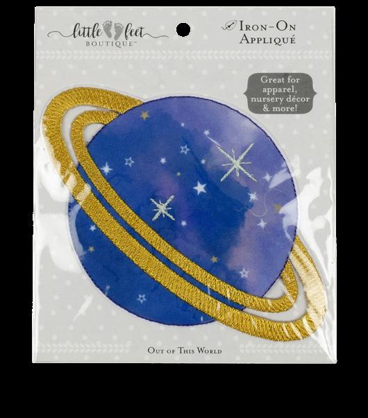 F. out oF this worlD iron-on APPliQués Adorable, coordinating iron-on appliqués. Great for apparel, nursery décor and more!