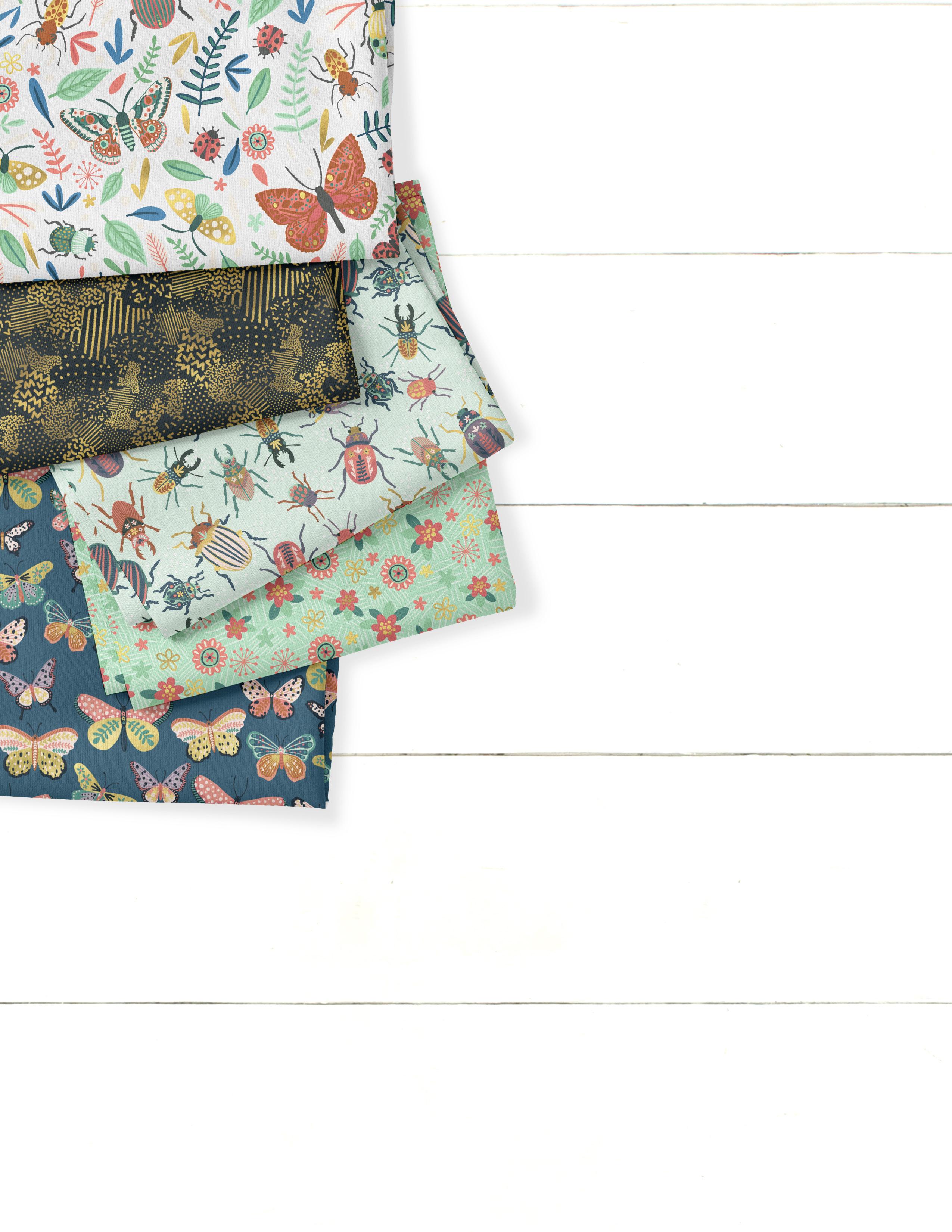 Vibrant flowers bloom and butterflies dance amongst sweet critters and lucky ladybugs in this newest collection from Fabric Palette. This visually compelling offering is set against a striking color palette of turq, teal and dark blue with bright pops of coral. Highest quality 100% cotton pre-cut fabric for quilting, sewing, and crafting.