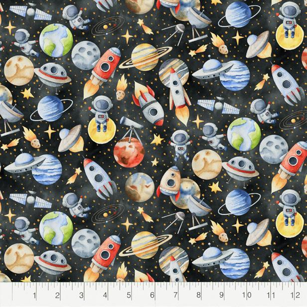 Get ready for some “out of this world” designs with the new, Cosmic Sparkle collection from Fabric Palette. This 5-piece collection offers 2 skus with a silver metallic finish. Inspired by all things celestial, this offering features planets and constellations set against colors inspired by deep space such as midnight black, rich blues, and purples. Highest quality 100% cotton pre-cut fabric for quilting, sewing, and crafting.