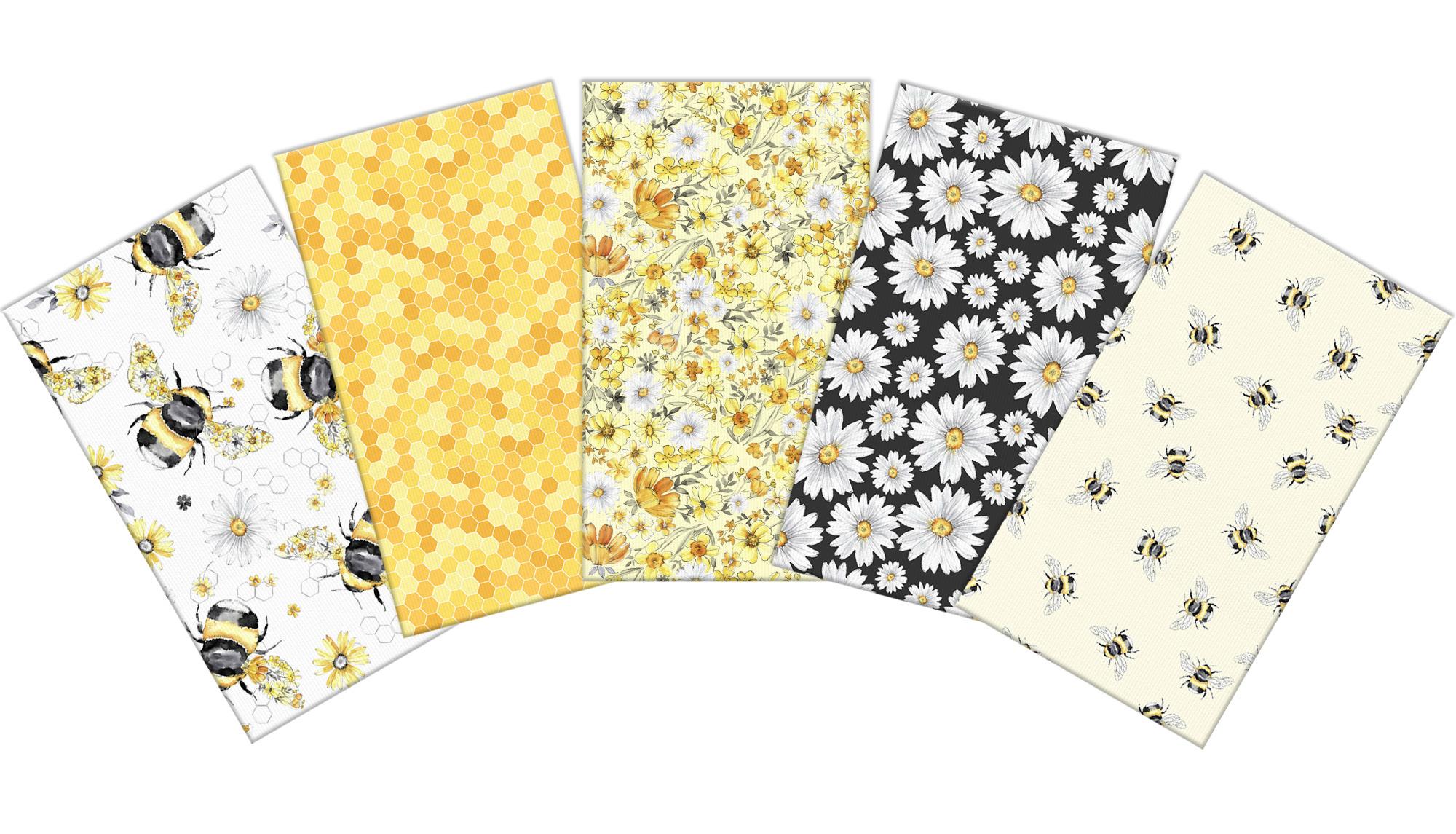 Bee-ready for another new & exciting collection from Fabric Palette. The Floral Bee collection is sure to create a “buzz”. In shades of black, white and honey, these eye-catching designs include bees in flight and beautiful florals. Highest quality 100% cotton pre-cut fabric for quilting, sewing, and crafting.