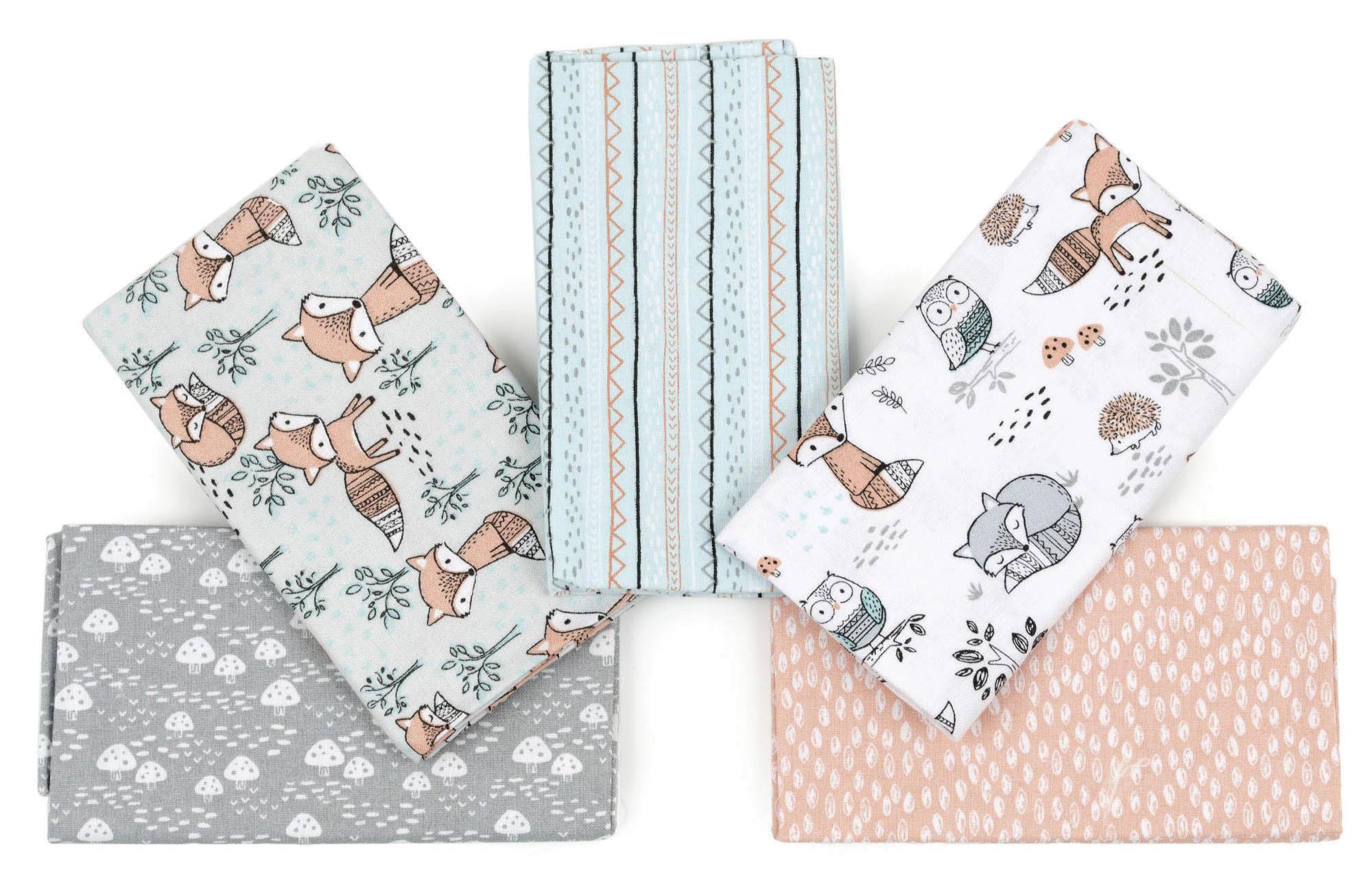 Charming Woodland collection offers gender-neutral prints with adorable creatures in gray, turquoise and coral. Highest quality 100% cotton pre-cut fabric for quilting, sewing and crafting.