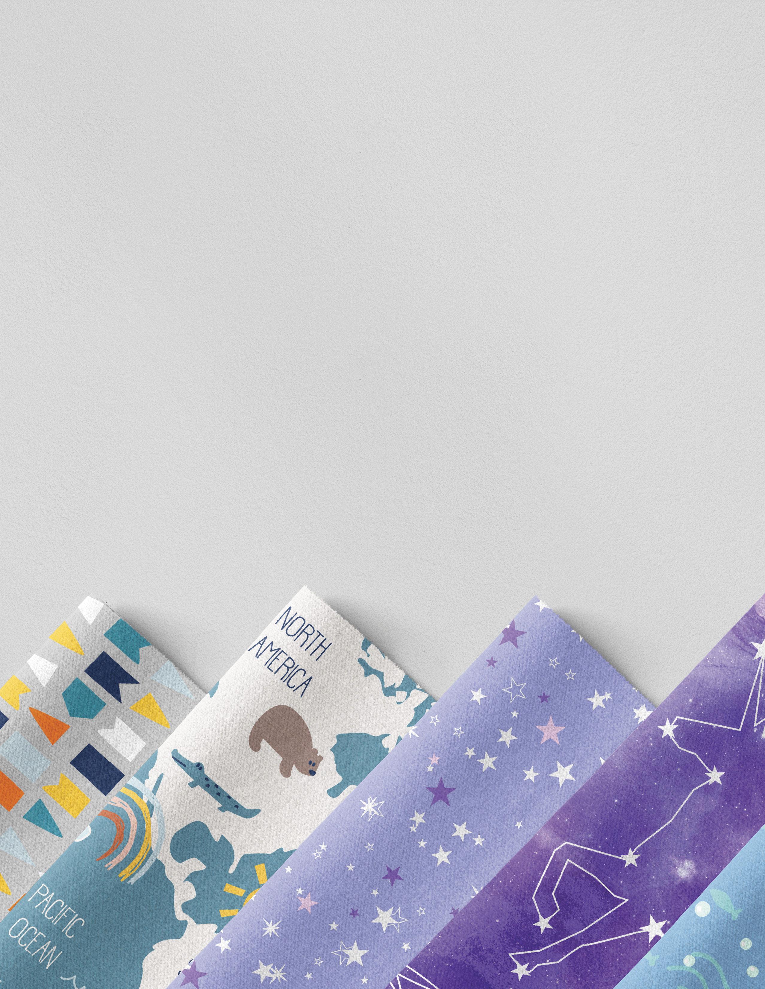 Budding astronomers abound with this collection. Up above the world so high – golds, deep blues and purples to create a backdrop that celestial dreams are made of.