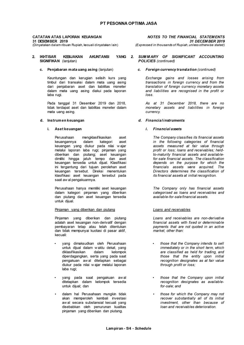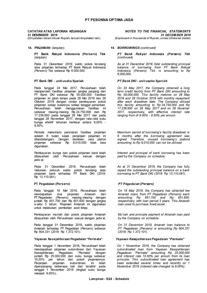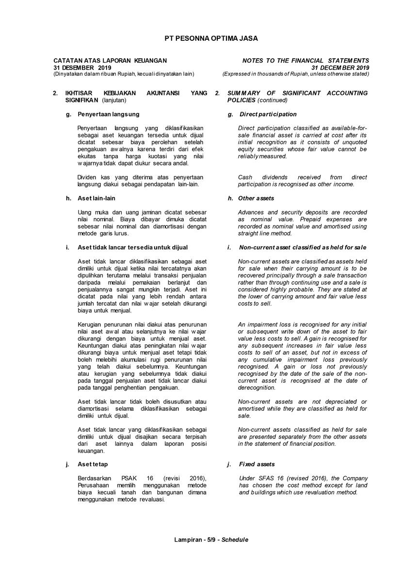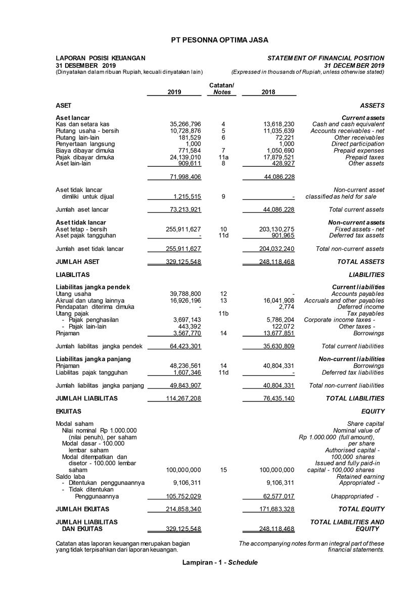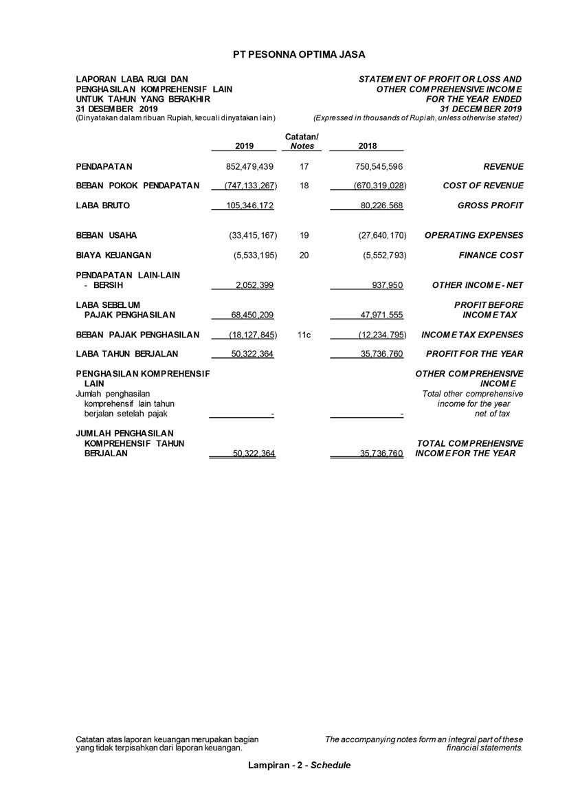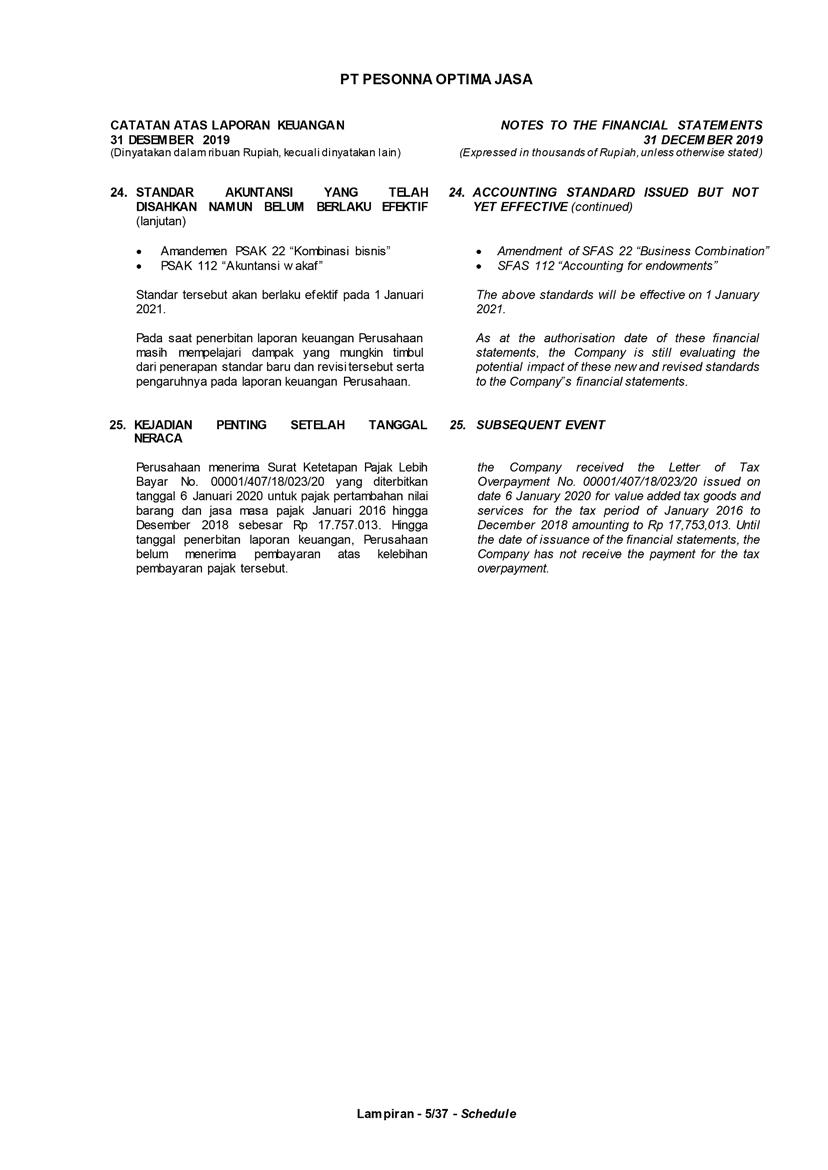 PT Pesonna Optima Jasa atau juga disebut “Perusahaan”, menyajikan Laporan Tahunan yang berakhir pada tanggal 31 Desember 2019 yang memuat informasi kinerja keuangan dan hasil usaha berdasarkan hasil audit Laporan Keuangan Kantor Akuntan Publik. Laporan tahunan ini juga memuat informasi-informasi yang mengandung proyeksi, rencana, strategi, dan tujuan yang bukan merupakan pernyataan data historis yang pada umumnya menggunakan kata seperti “percaya”, “mengharapkan”, “mengantisipasi”, “memperkirakan”, “memproyeksikan” atau kata-kata serupa lainnya, dan dapat dikategorikan sebagai pernyataan yang dapat bersifat pandangan ke depan (forward looking statement) sesuai definisi pada ketentuan yang berlaku.