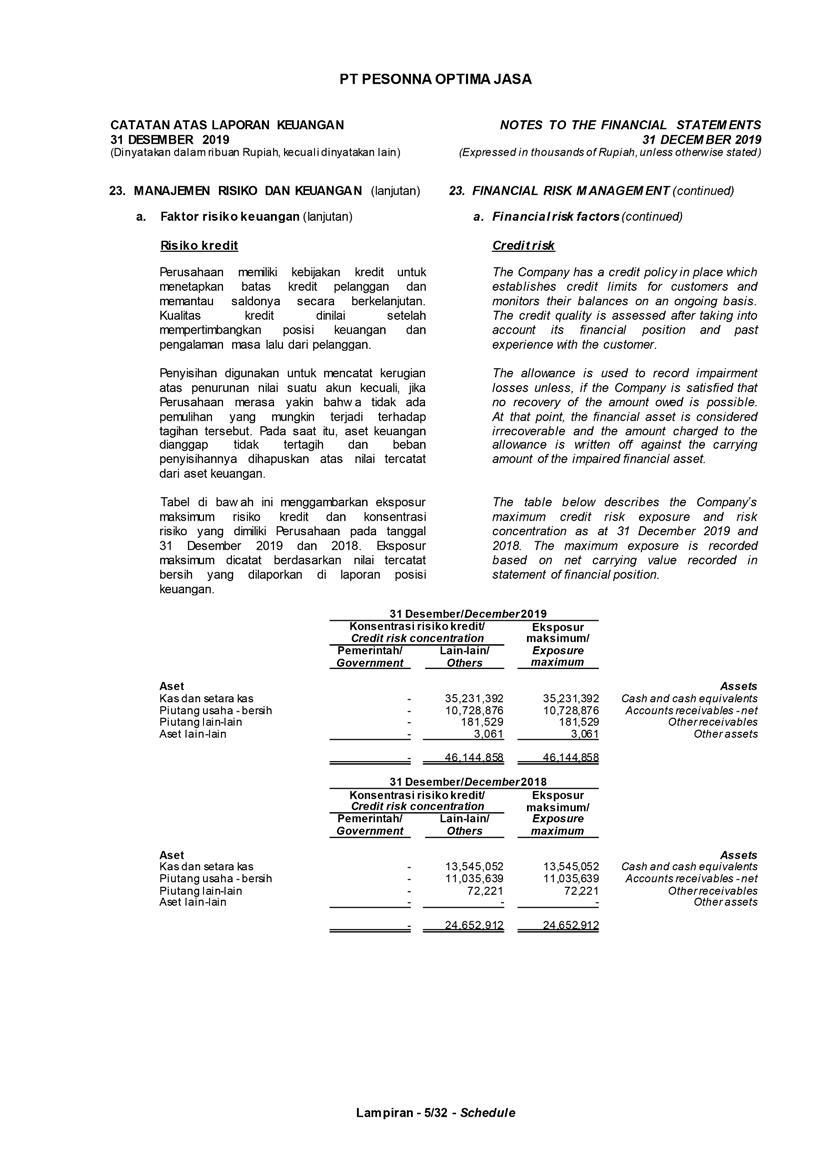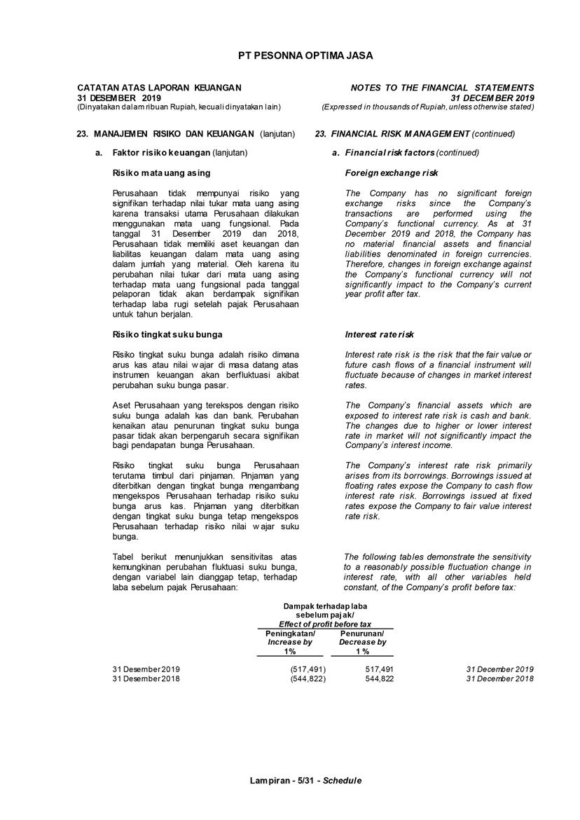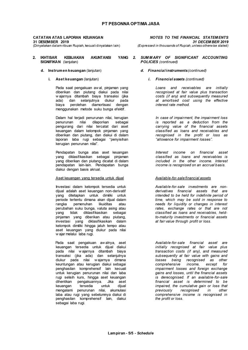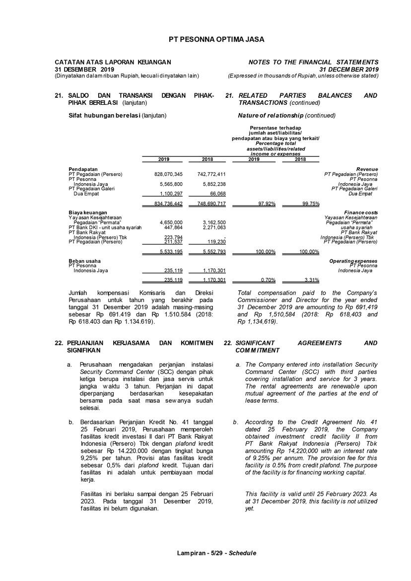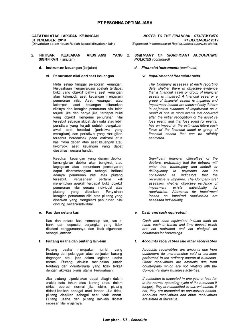 PT Pesonna Optima Jasa atau juga disebut “Perusahaan”, menyajikan Laporan Tahunan yang berakhir pada tanggal 31 Desember 2019 yang memuat informasi kinerja keuangan dan hasil usaha berdasarkan hasil audit Laporan Keuangan Kantor Akuntan Publik. Laporan tahunan ini juga memuat informasi-informasi yang mengandung proyeksi, rencana, strategi, dan tujuan yang bukan merupakan pernyataan data historis yang pada umumnya menggunakan kata seperti “percaya”, “mengharapkan”, “mengantisipasi”, “memperkirakan”, “memproyeksikan” atau kata-kata serupa lainnya, dan dapat dikategorikan sebagai pernyataan yang dapat bersifat pandangan ke depan (forward looking statement) sesuai definisi pada ketentuan yang berlaku.