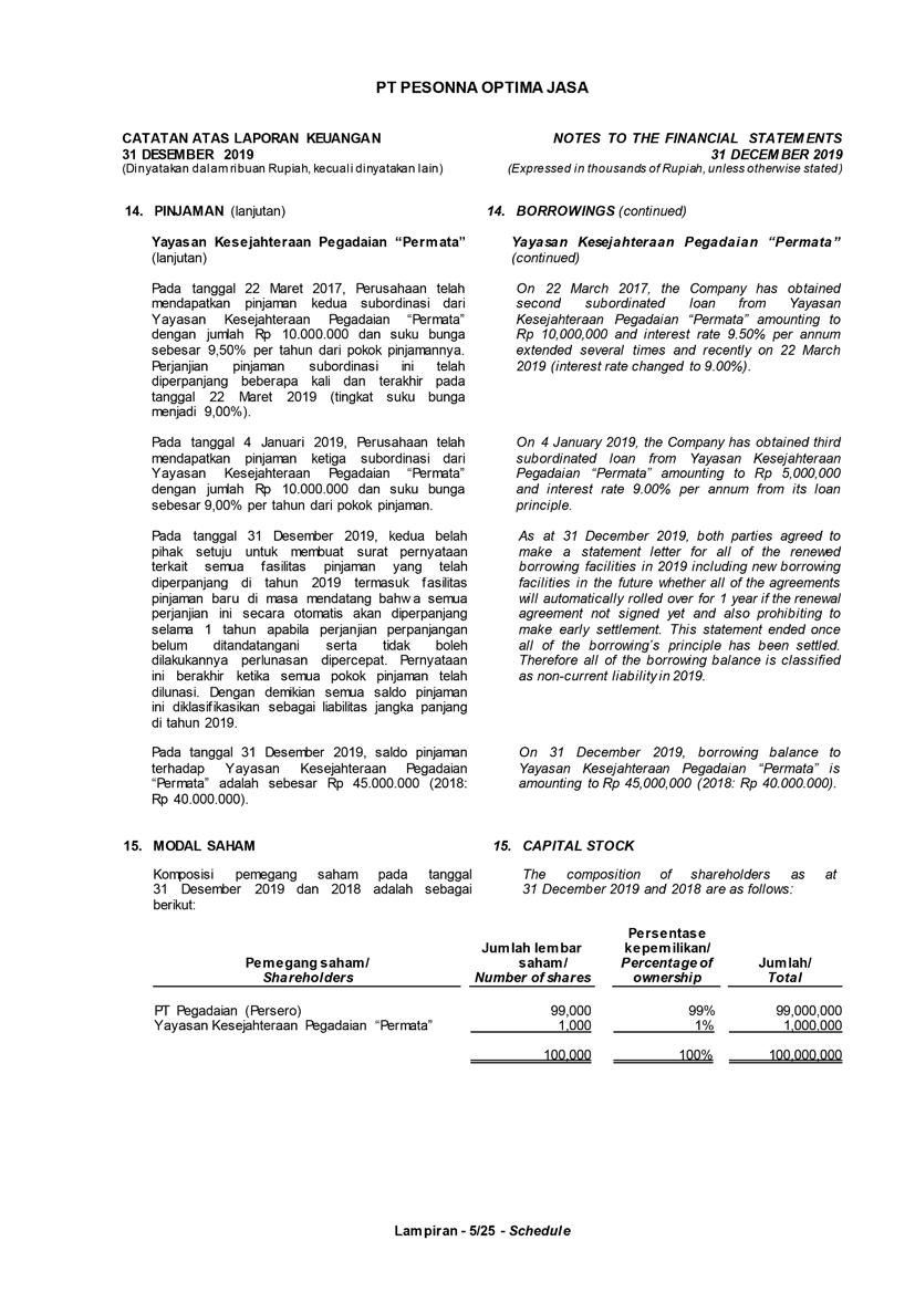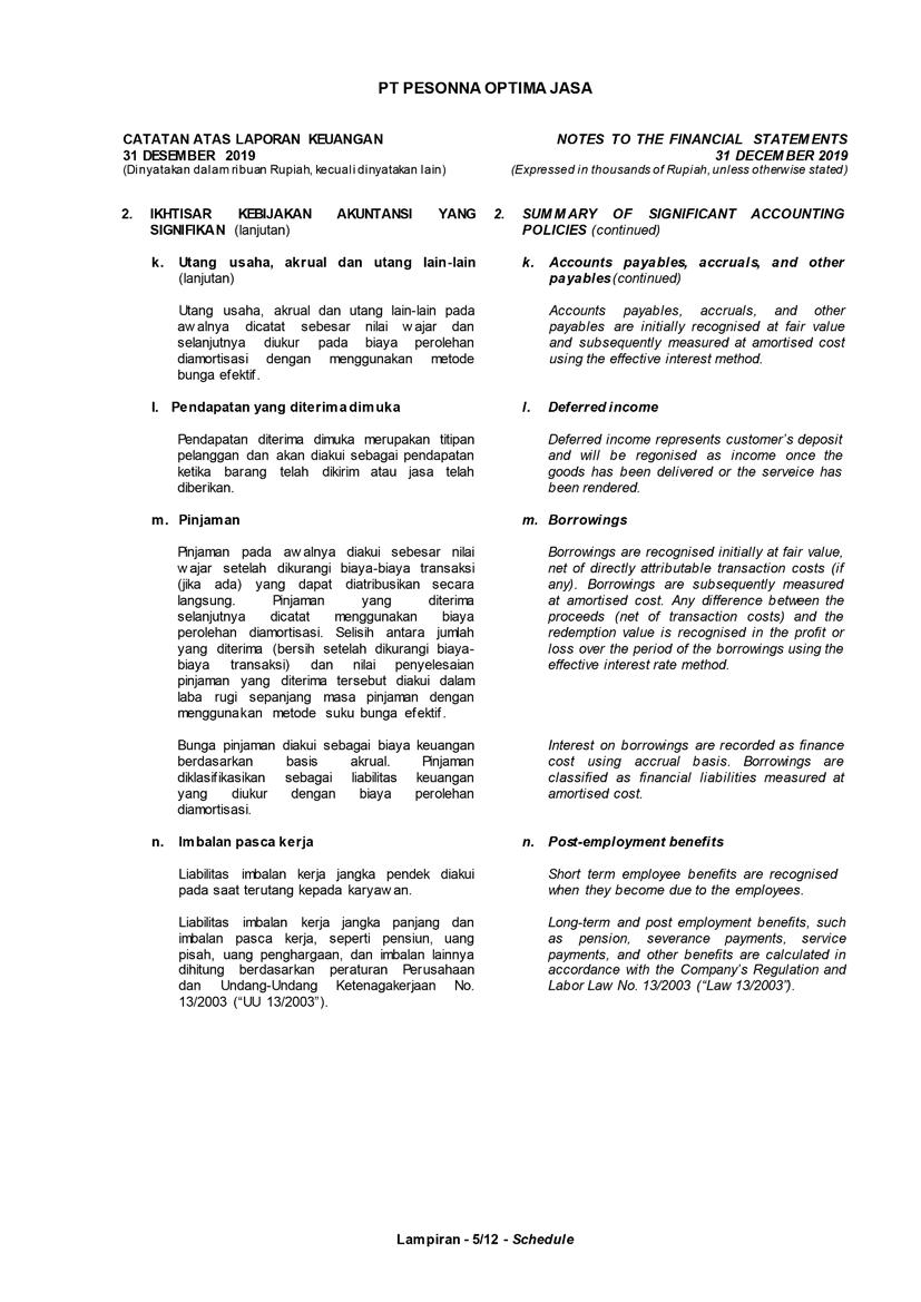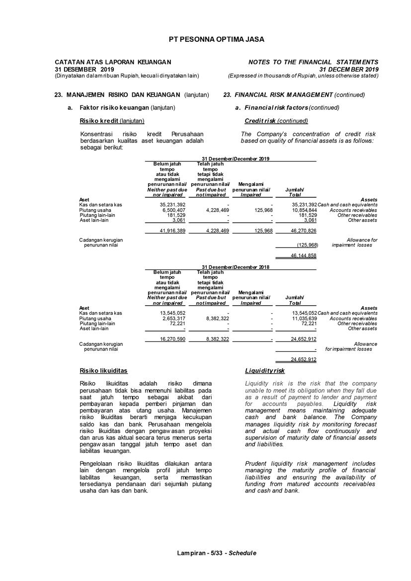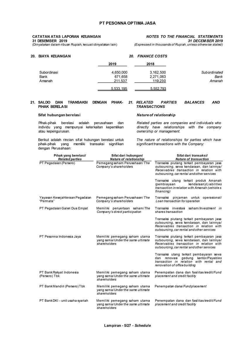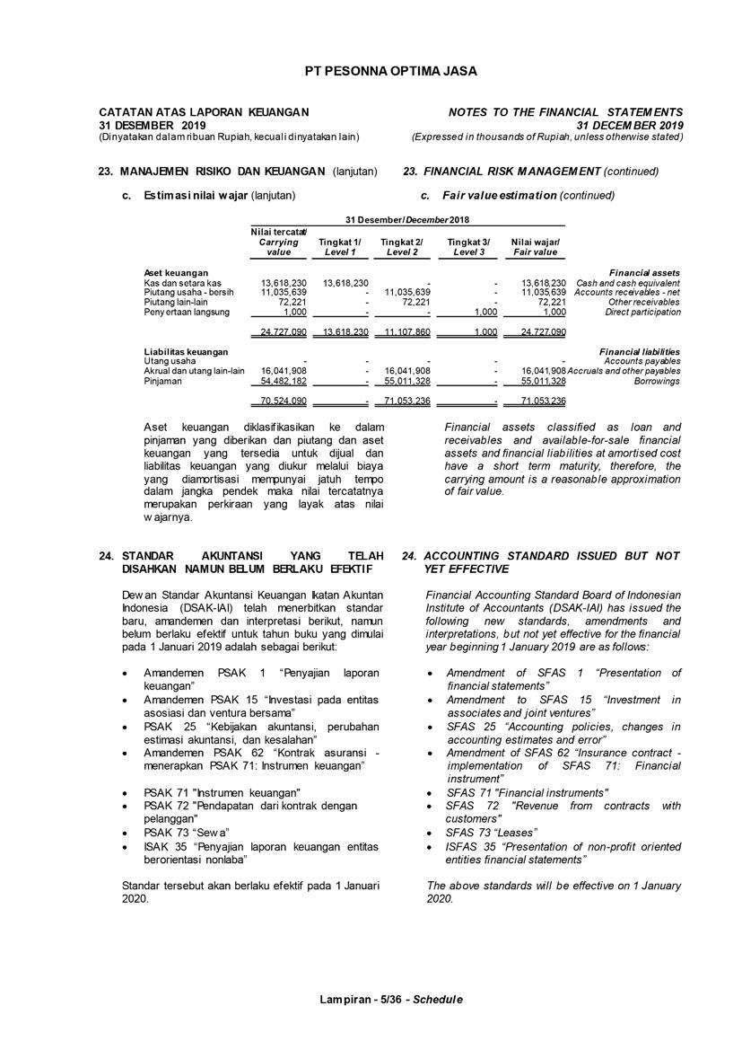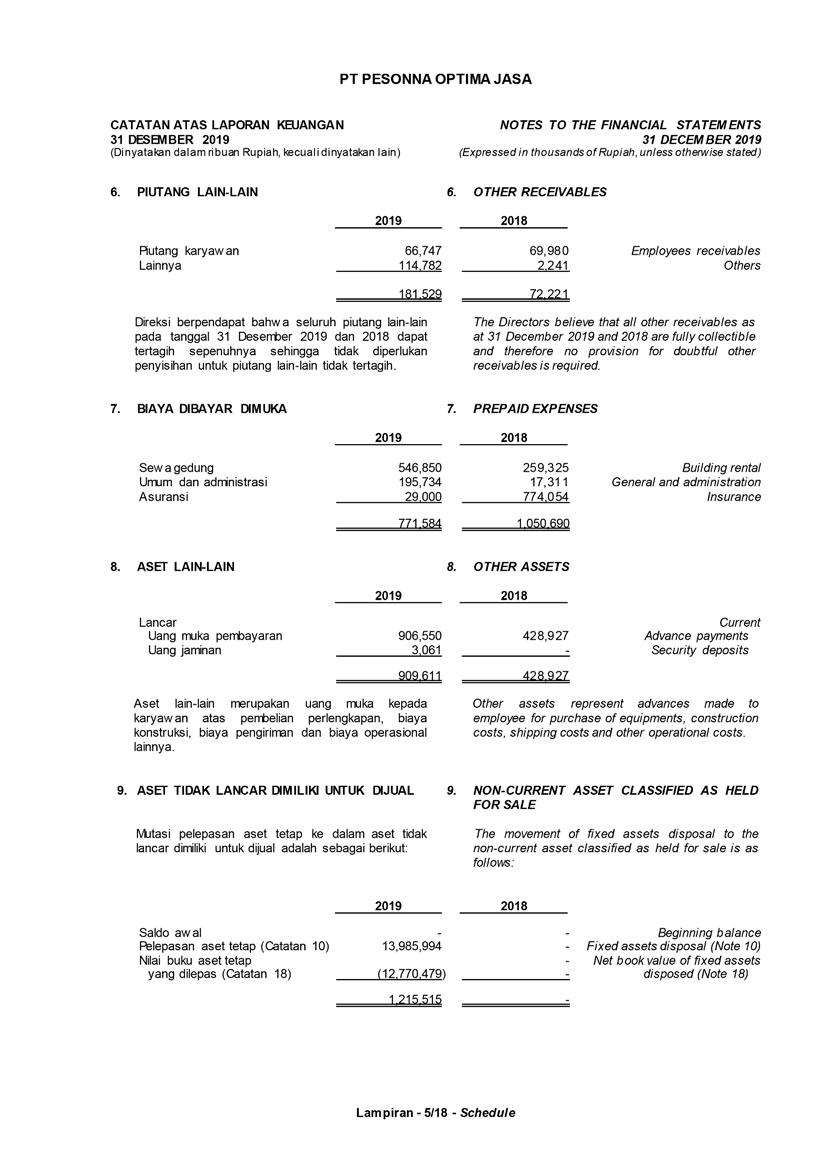 PT Pesonna Optima Jasa atau juga disebut “Perusahaan”, menyajikan Laporan Tahunan yang berakhir pada tanggal 31 Desember 2019 yang memuat informasi kinerja keuangan dan hasil usaha berdasarkan hasil audit Laporan Keuangan Kantor Akuntan Publik. Laporan tahunan ini juga memuat informasi-informasi yang mengandung proyeksi, rencana, strategi, dan tujuan yang bukan merupakan pernyataan data historis yang pada umumnya menggunakan kata seperti “percaya”, “mengharapkan”, “mengantisipasi”, “memperkirakan”, “memproyeksikan” atau kata-kata serupa lainnya, dan dapat dikategorikan sebagai pernyataan yang dapat bersifat pandangan ke depan (forward looking statement) sesuai definisi pada ketentuan yang berlaku.