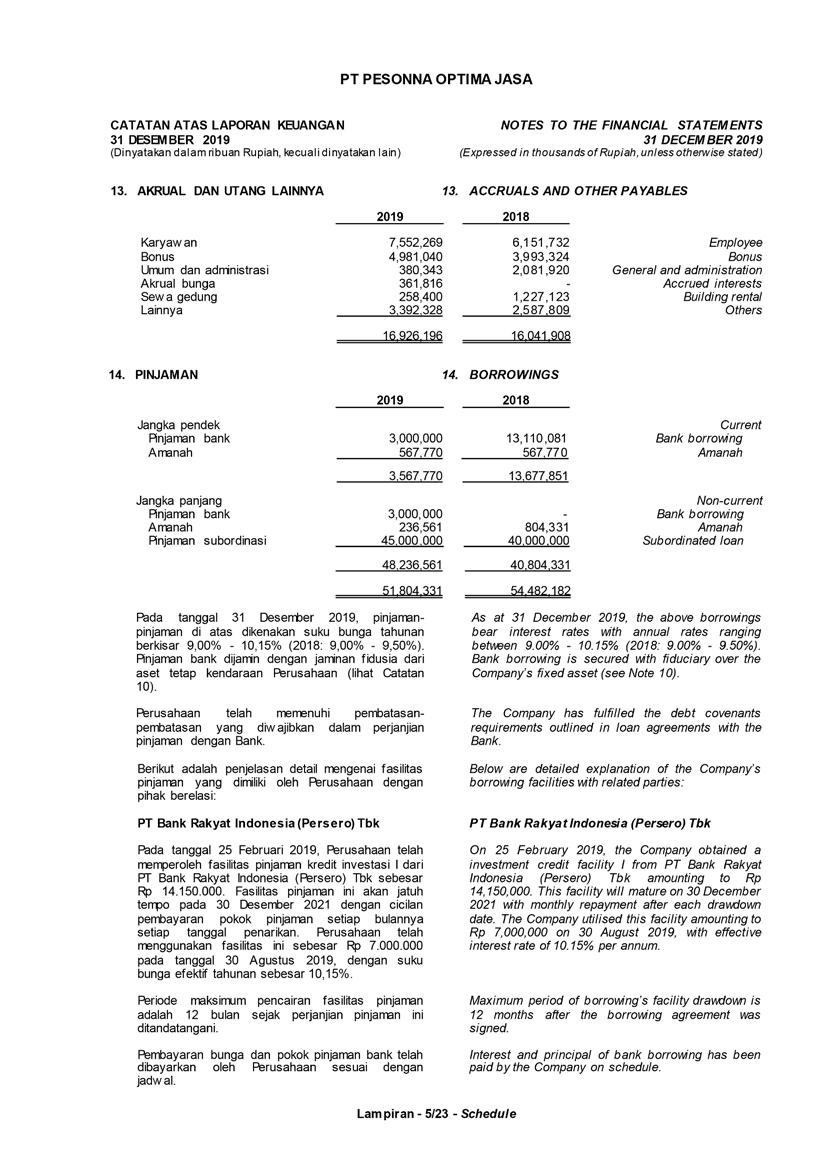 2019 is an important year for PT Pesonna Optima Jasa, where the Company has sailed through a journey and progress through its five years. After continuing through our five years of growth, we have prepared to conduct various breakthroughs to break the boundaries and challenges. The Company has taken various strategic initiatives to bring the Company towards a sustainable business growth.