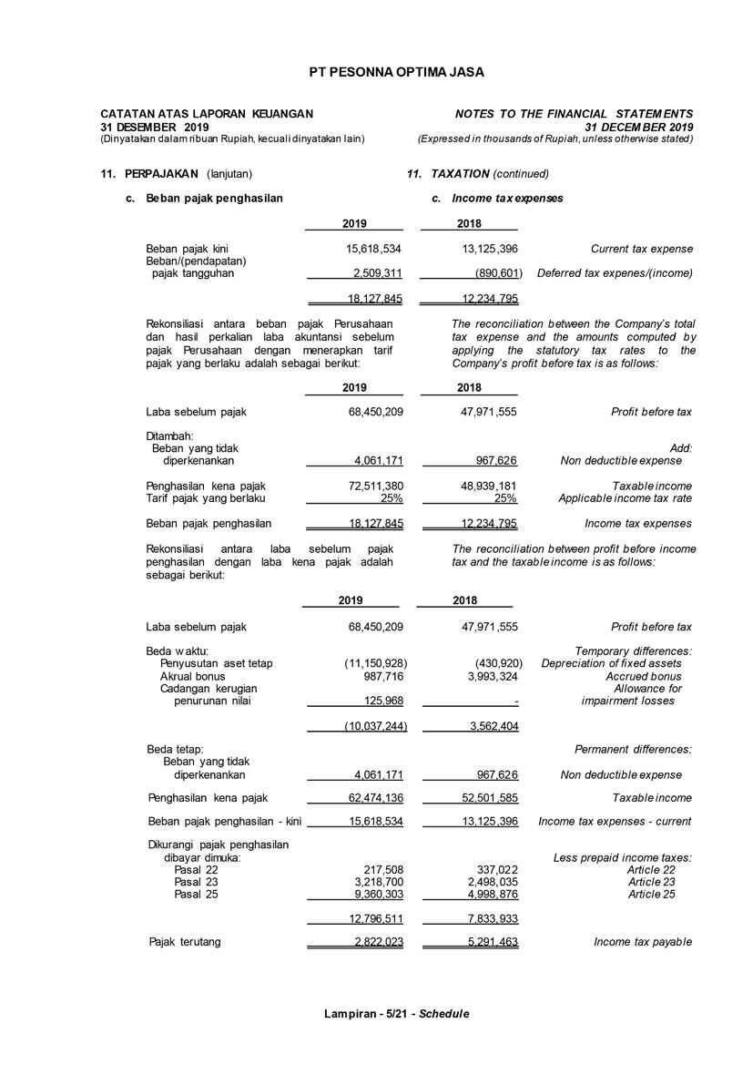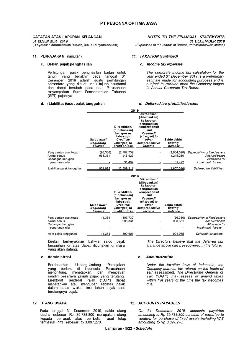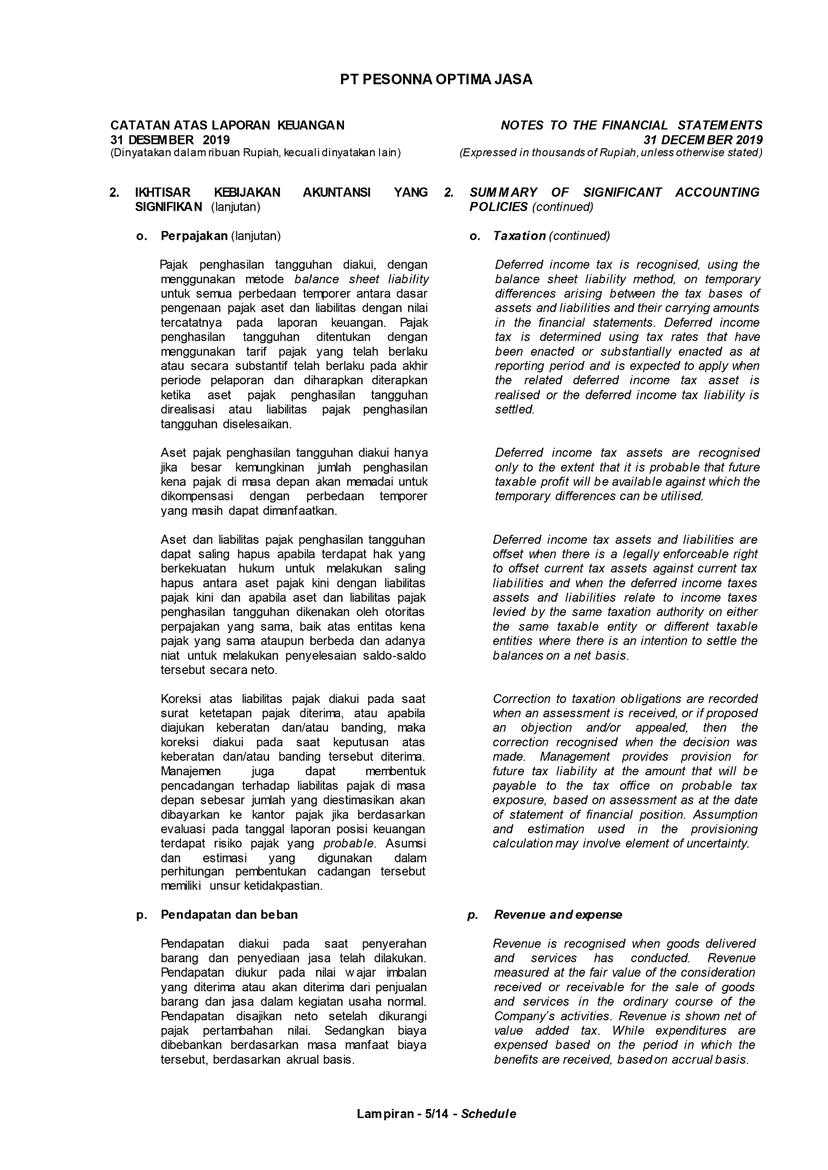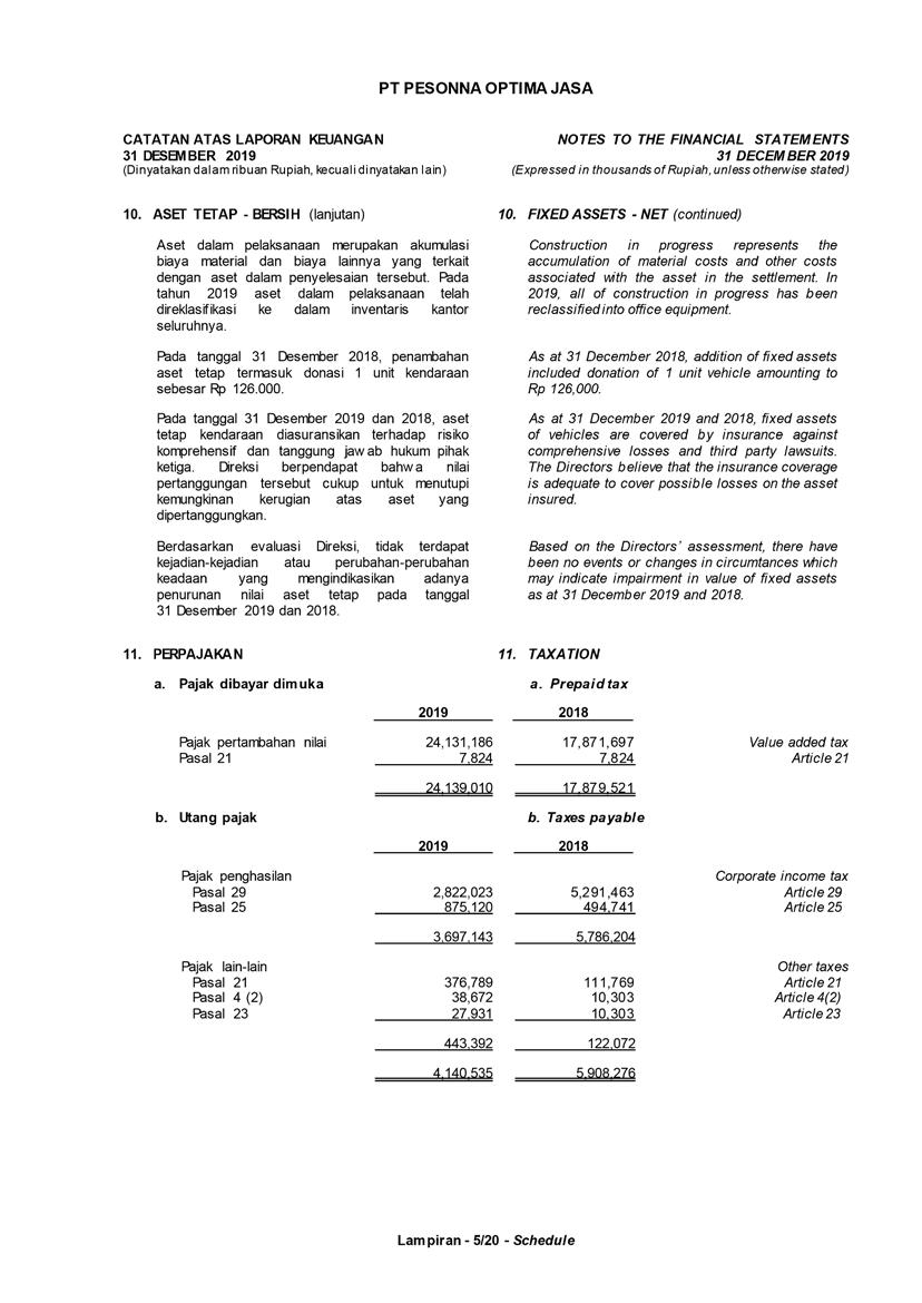 PT Pesonna Optima Jasa has always complied with government regulations in taxation and has carried out payment and reporting obligations in accordance with applicable tax provisions.