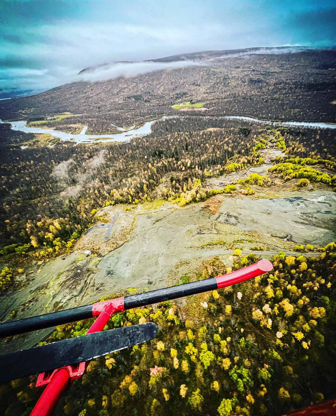 Wir bereiten alles für den Abtransport vor, ich gehe wieder auf die Spitze, wo ich mich mit Jesper treffen soll. Dort beobachten wir, wie beide Elchbullen ausgeflogen werden und machen uns dann für unsere eigene Abholung bereit. Ich finde auf dem Plateau noch einige Abwurfstangen von Rentieren, die ich als Souvenir mitnehme. Dann hören wir schon den nahenden Helikopter. Wir bedanken uns bei unseren samischen Freunden und versprechen, bald wiederzukommen.