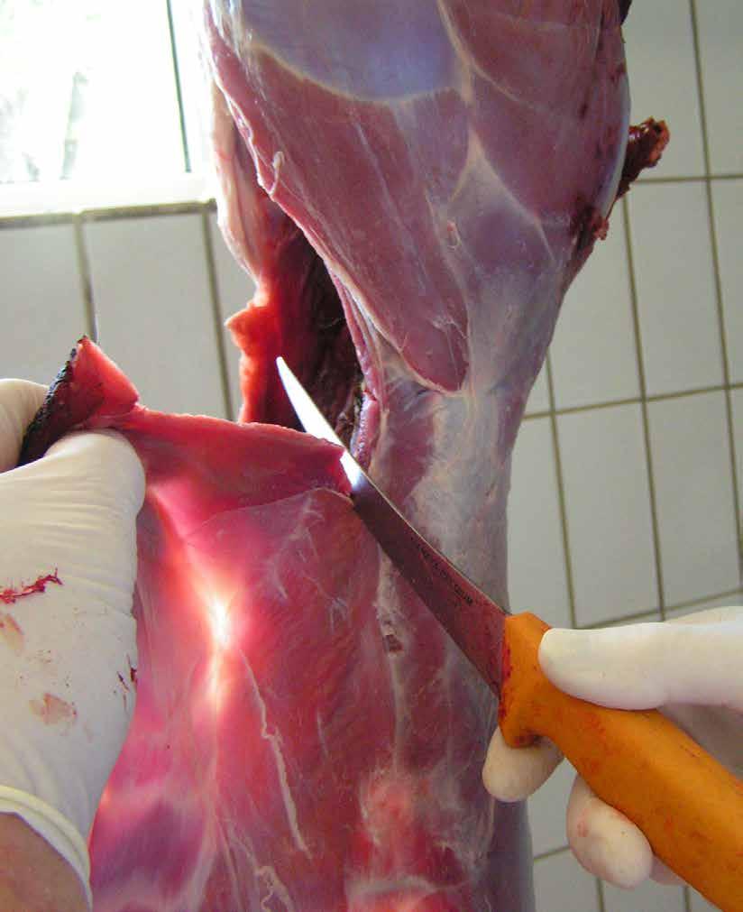 Rentieren in die Ohren ritzen. Durch diese Markierungen weiß der Metzger später, wem welches Stück zuzuordnen und gutzuschreiben ist.