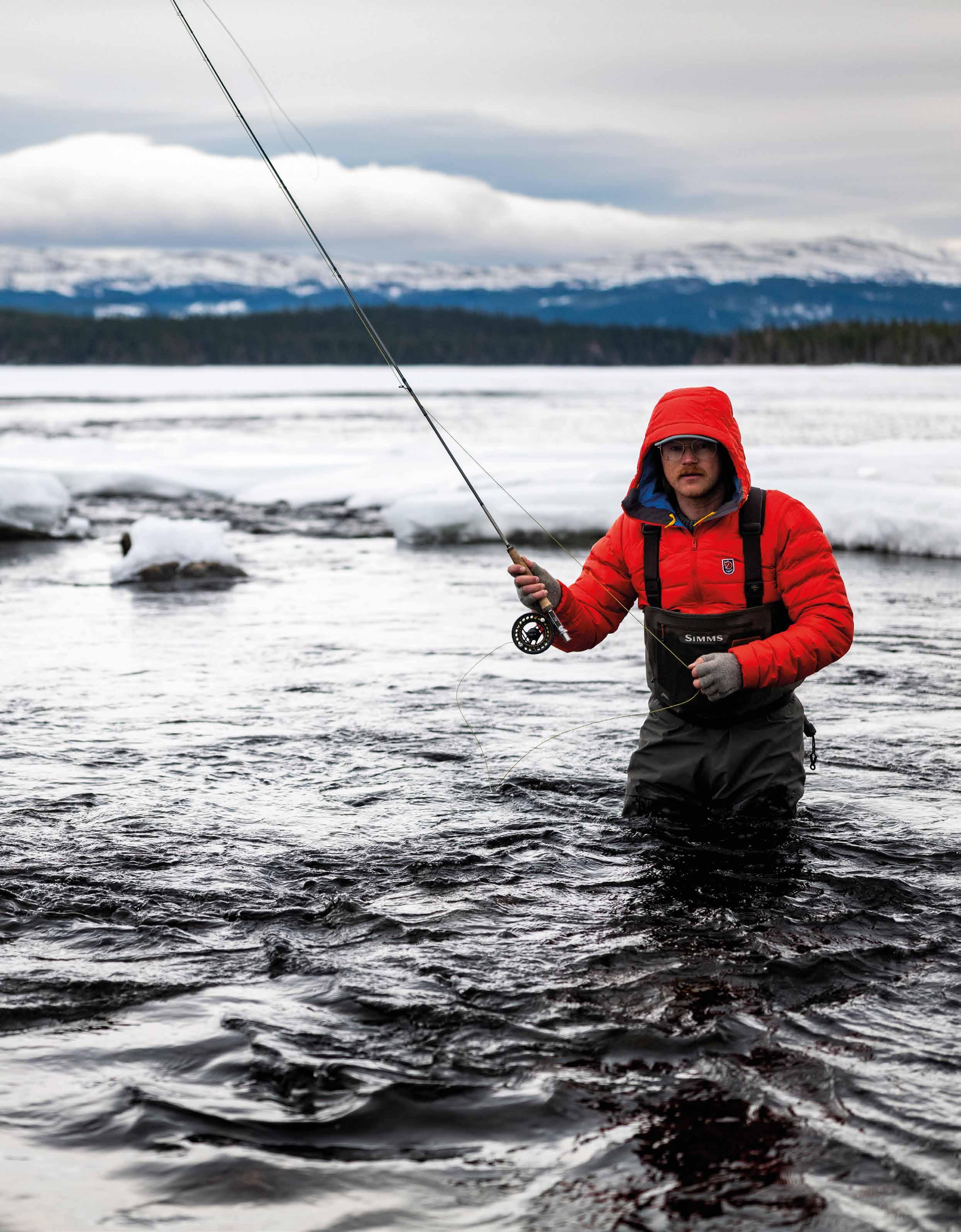 Seen stattliche Forellen, die unser Abendessen sind. Und wie immer, wenn wir in Schweden sind, essen wir kiloweise Flusskrebse. Abends können wir schon in der zweiten Nacht Polarlichter beobachten, einfach wunderbar. Je weiter wir gen Norden kommen, desto kälter wird es, in der Nacht sinkt die Temperatur schon gegen null. Wir halten zudem an vielversprechenden Flüssen, denn wir wollen unbedingt noch einen arktischen Saibling (SalvelinusAlpinus)fangen, der um diese Jahreszeit sehr aktiv ist und dem wir schon seit einigen Jahren erfolglos nachstellen. Leider bekommen wir auch dieses Mal „nur“ ein paar Äschen ans Band. Nach fünf Tagen Fahrt sind wir endlich da. Jesper hat mich gebeten, noch Proviant einzukaufen, da er es erst am nächsten Tag zum Treffpunkt schaffen wird und wir dann direkt losfliegen müssen. Ich kaufe kaloriendichte Nahrung ein, da ich irgendwie im Gefühl habe, dass wir die brauchen werden. Meine Frau Dana und Ludwig machen es sich in der Hütte von Jespers Eltern gemütlich und checken die Angelmöglichkeiten für die nächsten Tage aus. Ich beginne damit, meine Sachen für die Elchjagd zu packen. Jesper hat mich vorgewarnt, dass weder im Hubschrauber noch in der Unterkunft viel Platz sein wird, also muss ich noch etwas umdisponieren, weil ich wie immer viel zu viel eingepackt habe.