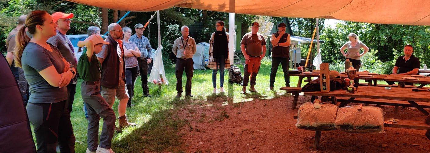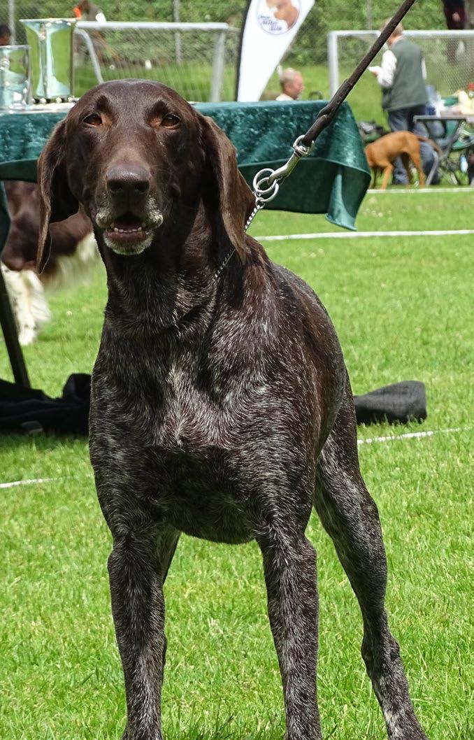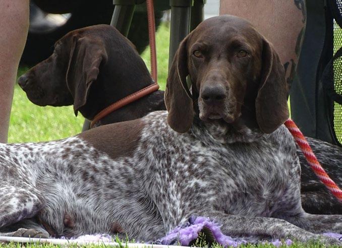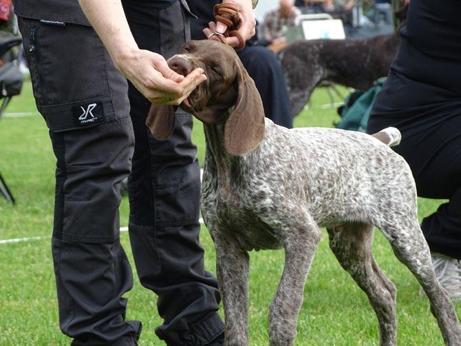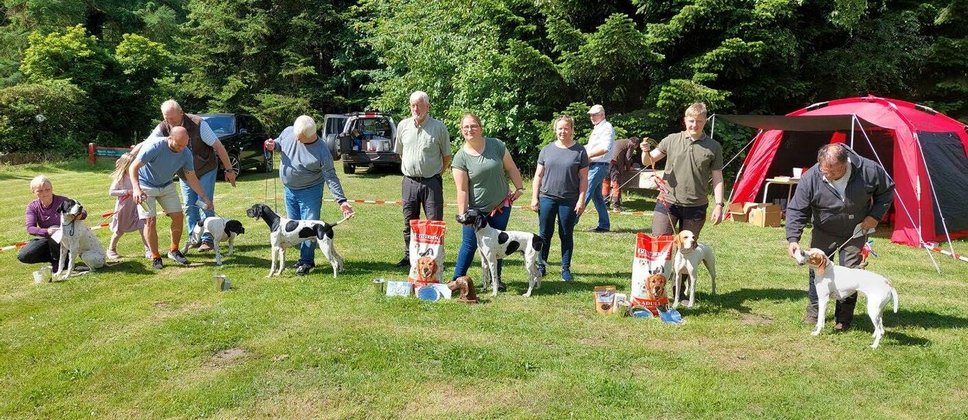 Som nye i denne jagthundeverden havde vi været lidt spændte på, hvordan vi kunne håndtere opgaven med at repræ sentere klubben, men vi var heldigvis “naboer” til Bretonklubbens telt, så vi havde god støtte fra erfarne folk, som vi havde mødt på markprøver i det for gangne år - og som dagen skred frem, så fik vi talt med mange fra de andre klubber, så alt i alt blev det en rigtig hyggelig dag med gode samtaler om hunde, jagt og træning.