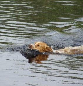 vilkår end normalt. Heldigvis var der god stemning og der var overraskende nok ingen racer, der skilte sig væsentligt ud fra de andre. Dummier blev kastet, fundet og hentet, selvom bassinet drillede lidt for de fleste hunde, der ikke lige spon tant hoppede op i poolen for at hente en dummy.