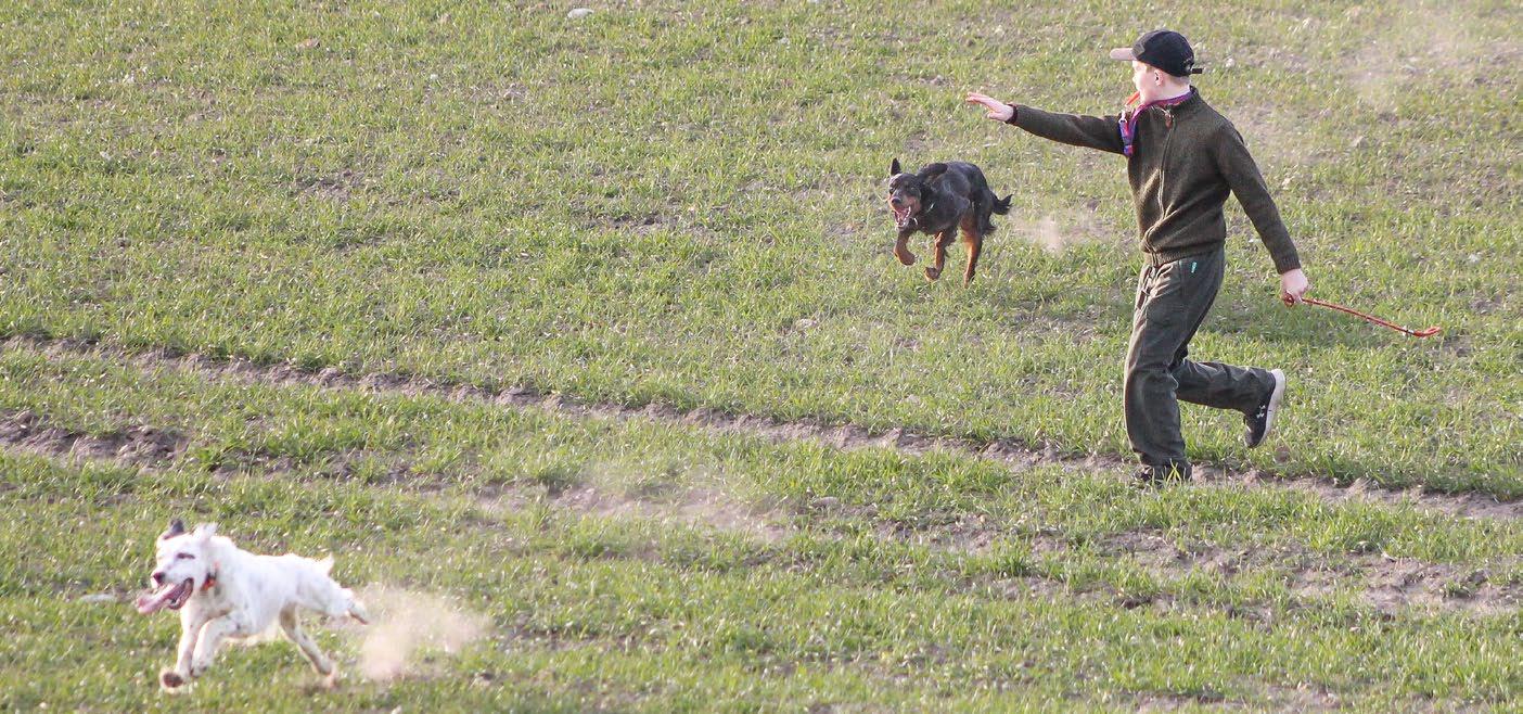 “Jeg har hende!” råbte jeg triumferende, efter en frisk løbetur tværs over en rapsmark, igennem et hegn med tjørn og brombær og halvvejs over en mark med vintersæd. Vores 10 måneder gamle Cara havde fundet et rådyr, og lagt handling bag ord som “forfølger rådyr” og “meget svært at koble”. Da vi kom tilbage til grup pen, blev der klappet opmuntrende.