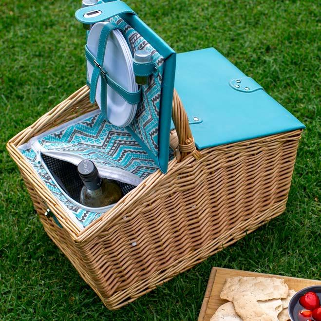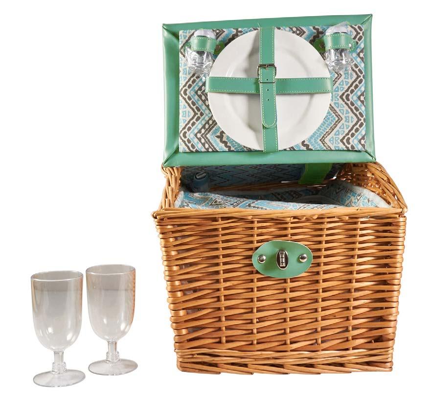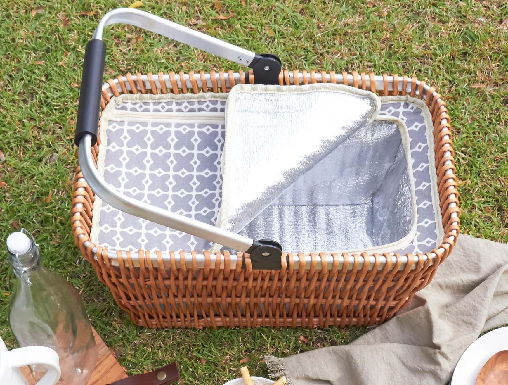 Angled Picnic Basket with Insulated Compartment & Contents