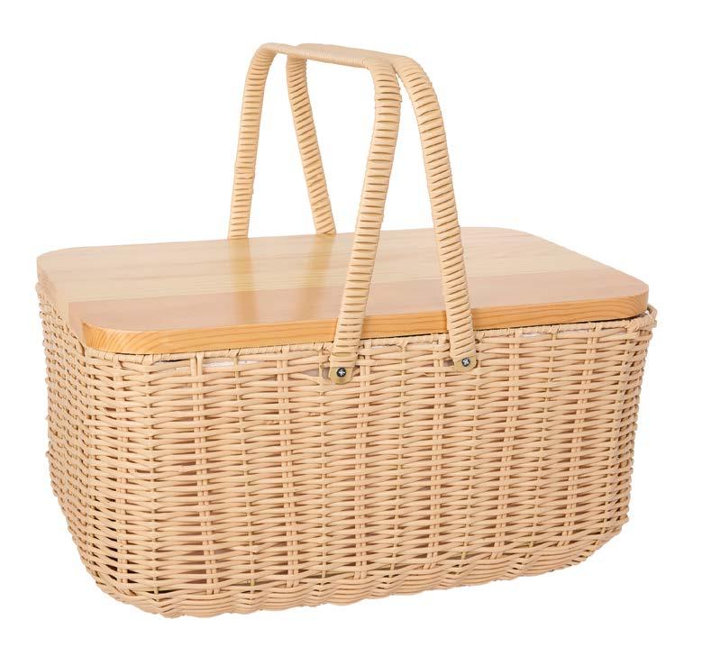 Natural Raw Insulated Picnic Basket with Wooden Table Lid