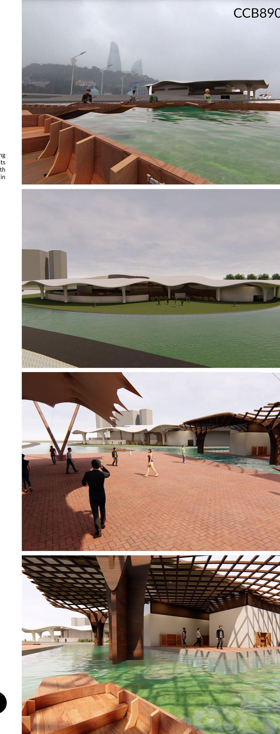 All spaces support gathering and spread of cultural activities, the dam gallery is part of the design, structure tethered to dam acts as culture centre and exhibition