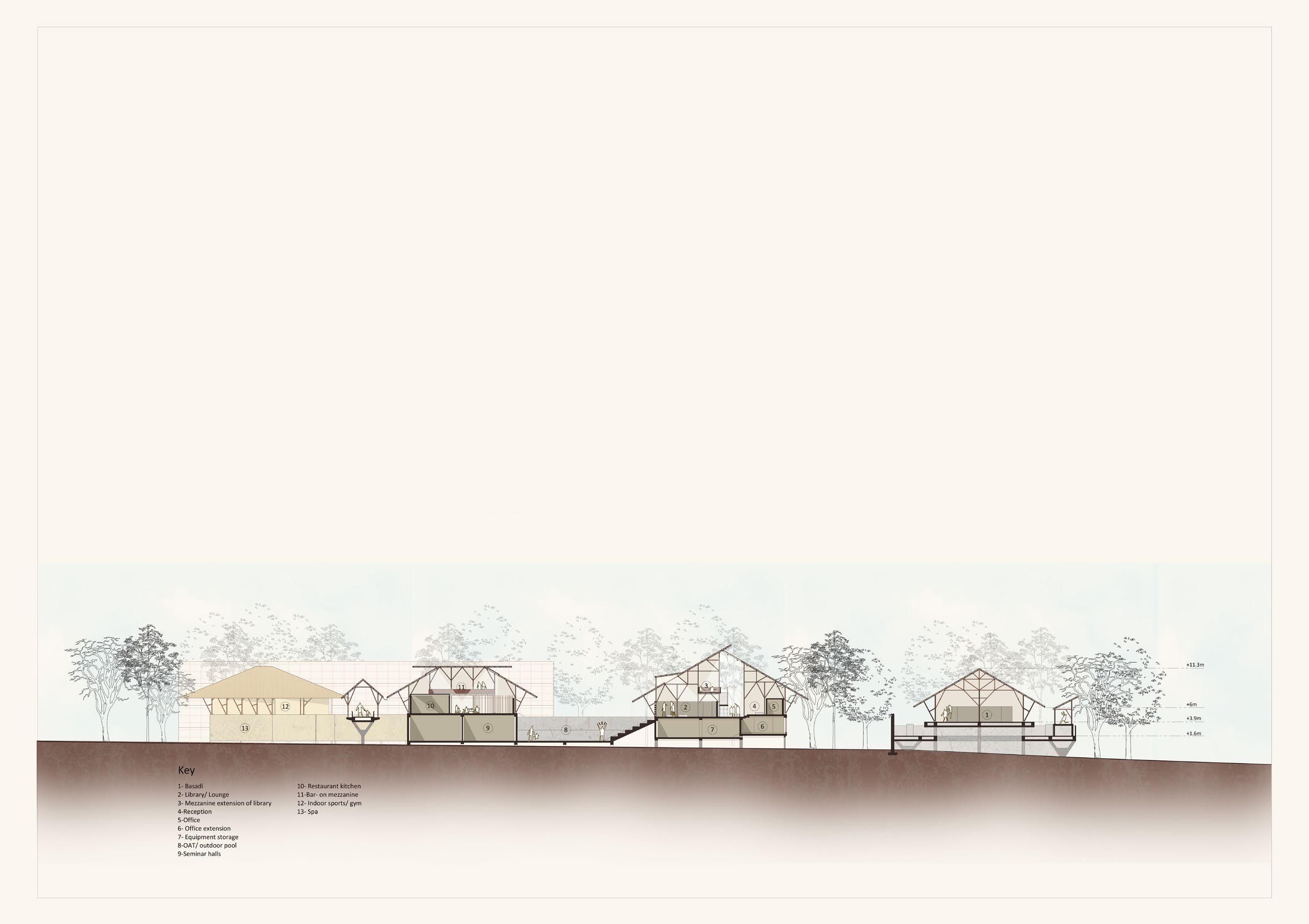 When the water level is high and nature has the upper hand then the design acts as a pavilion to view the scenic backdrops and the spaces where activities happen are introverted. (8)