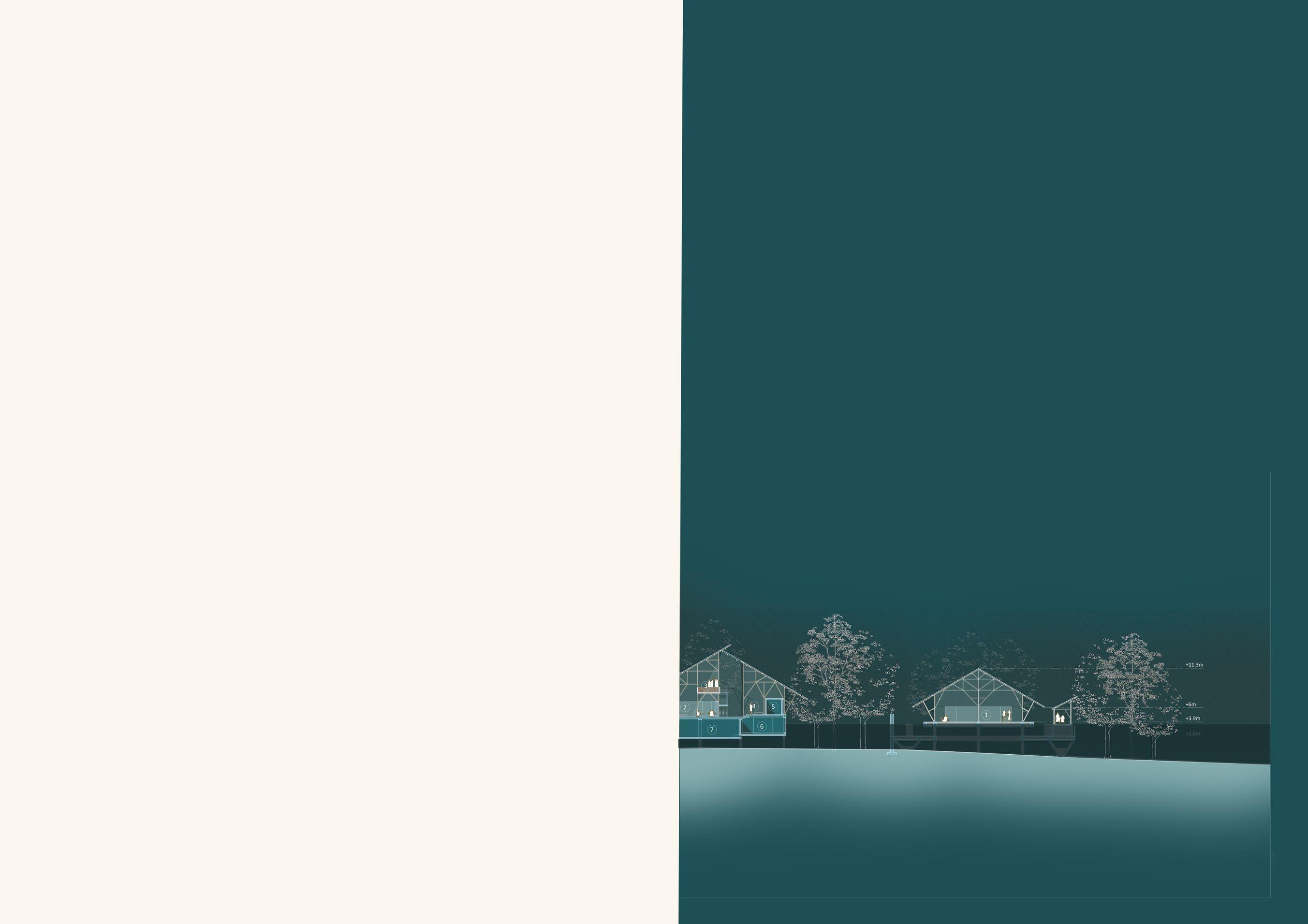 Contrasting character of design on land and waterLand cluster being more solid and rooted and water cluster as a marker for existing structure, more temporal and transperent in character