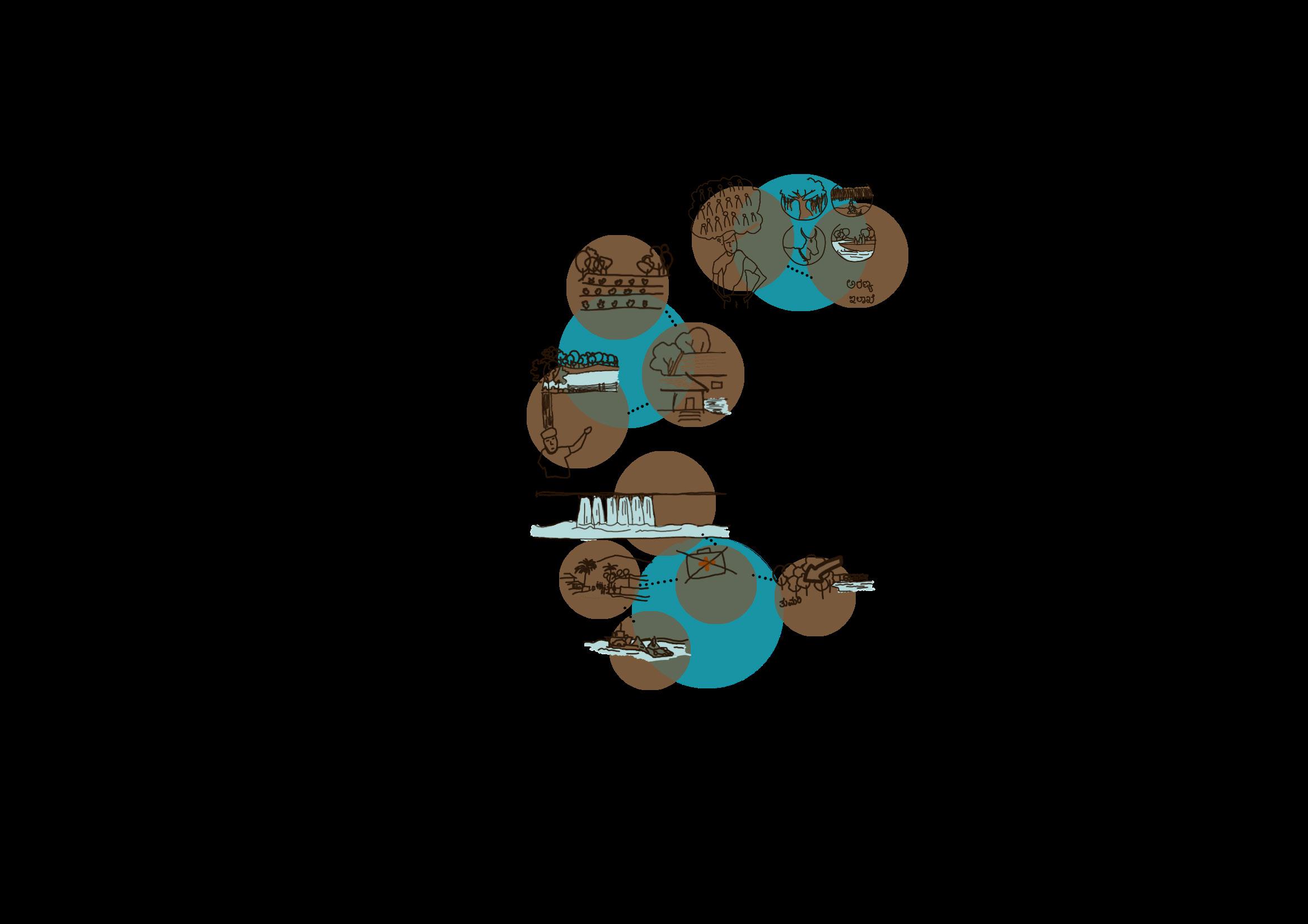 The people lost not only their homes but also their culture and memories of the land called ‘Kalenadu’. Current communities struggle to survive with lands handed down to them by the Government in Forest areas with barely any resources/ climatic conditions required for agriculture. With lack of any amenities in the ‘island’ the current generation is forced to move out. The plight of the people either seeking connectivity with the outside world or a selfsustained island leads to negative connotations towards any future infrastructure project on the river. This thesis will explore how to extend the axis of this forgotten structure to give back to the community and ecosystem, instead of newer proposals on the river.It addresses the issues of the immediate context to foster resilience and connectivity, thus re-building community and collective memory. It pieces together the narrative of the land by linking past functions and future possibilities, so that people associate the dam with better memories.