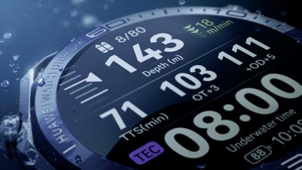 Sonar communication down to a depth of 150 metres – safety you can feel HUAWEI WATCH Ultimate 2 is considered the first smartwatch that makes it pos-