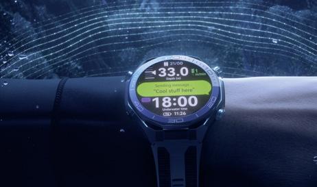 sible to send messages underwater. Thanks to innovative sonar technology, you can communicate with other HUAWEI WATCH Ultimate 2 devices at depths of up to 150 metres – over a distance of 30 metres. A signal or a short message –and you stay connected, even at depth.