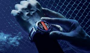 dual-band technology and five satellite systems to deliver accurate location data even in challenging environments. The gap antenna system ensures a stable connection – even in rocky coastal regions or remote expeditions. On the surface, the eSIM function turns the watch into a fully-fledged communication device. Phone calls, messages or music – everything works without a smartphone. Thanks to AI-powered noise cancellation, every conversation remains clear, whether on the beach, on a boat or in wind and waves.