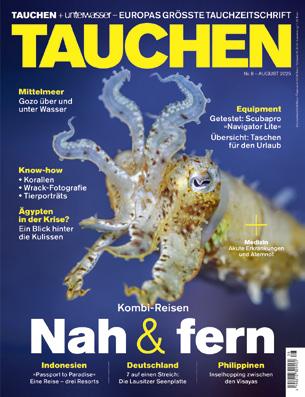 Subscription price: 12 issues, Germany: 118.80 euros incl. postage, Austria: 130.80 euros, Switzerland: 194.40 sFr, other European countries (land route): 144,- Euro, other European countries (by air): 186,- Euro, non-European countries: 211,20 Euro. Ordering single issues: Only against bank or credit card debit, (total price: number of issues times issue price of 9.90 euros plus postage) from the diving subscription service or e-mail: abo@tauchen.de, Internet: www.tauchen.de