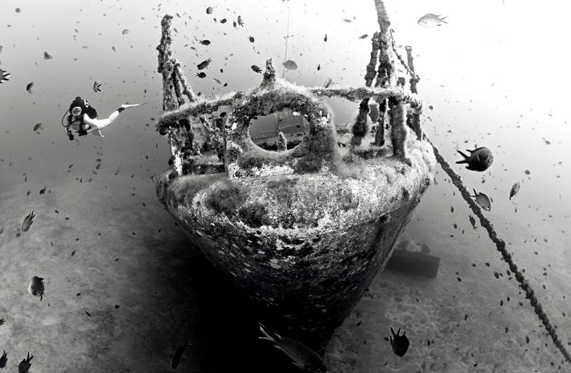 Even though the diver is the main subject, the background deserves attention. The diver's body shape should fit the composition of the image and the intended direction of movement. It must be clear that the diver is moving towards a dominant, highlighted foreground subject – this way, he becomes part of the story told by the image.