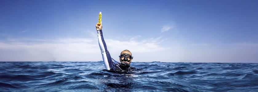 The silhouette of the diver should stand out as clearly as possible against a 'clean' background. The space below the diver must be emphasised in particular to highlight the feeling of floating through the water.