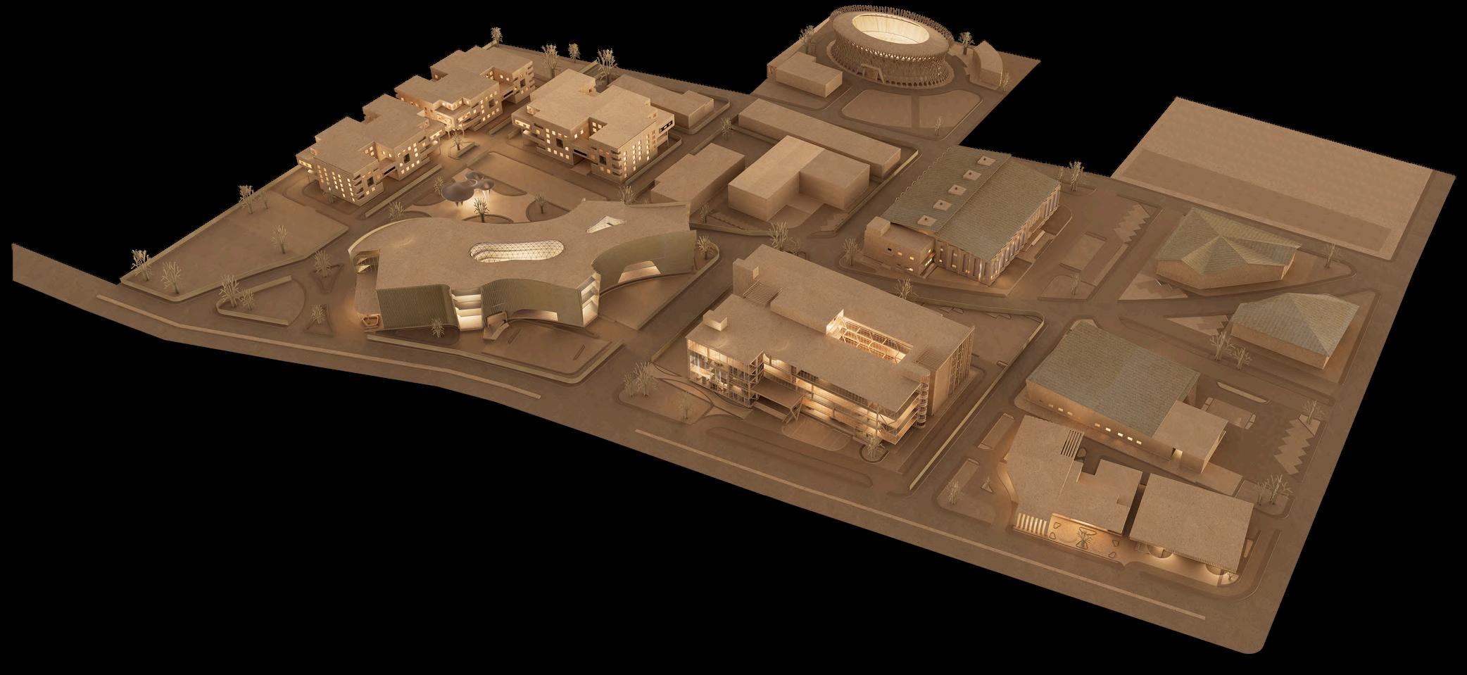 The free form and organically shaped roof canopy extend beyond the building footprint to create shaded open spaces around the building footprint.
