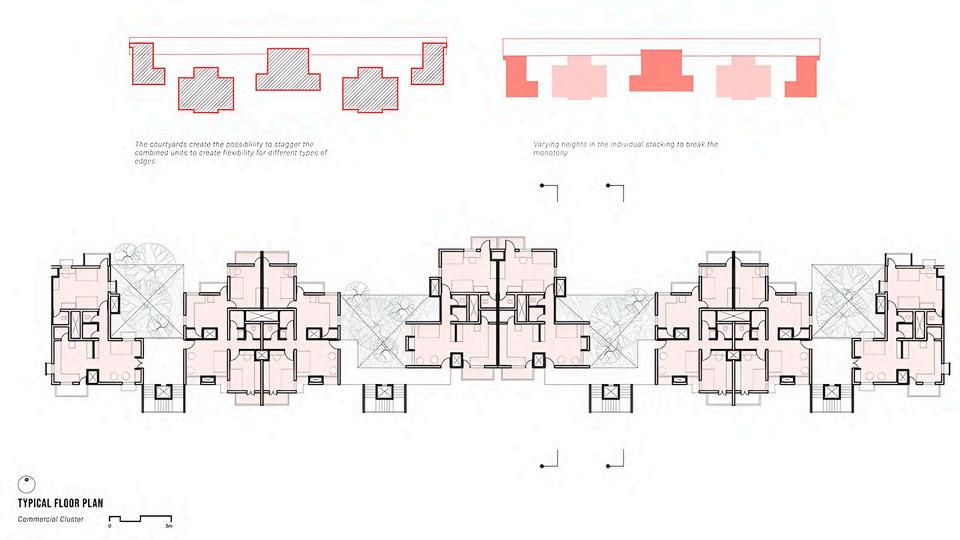 Different types of configurations coming together to form the commercial cluster with presence of commercial shop strip responding the edges