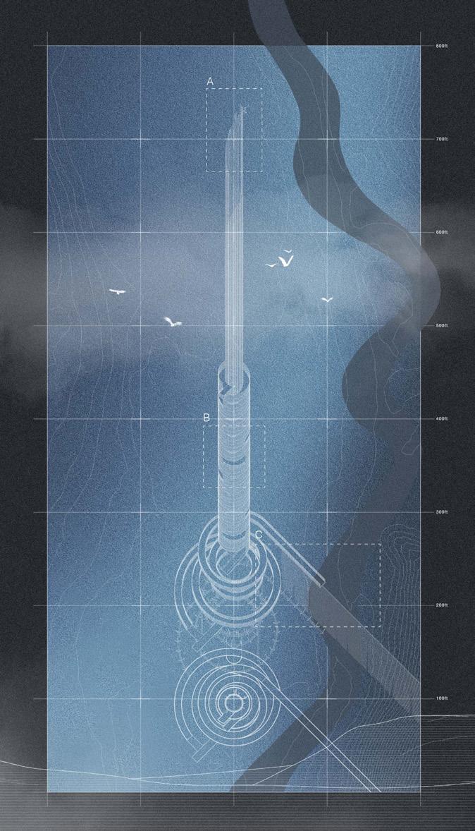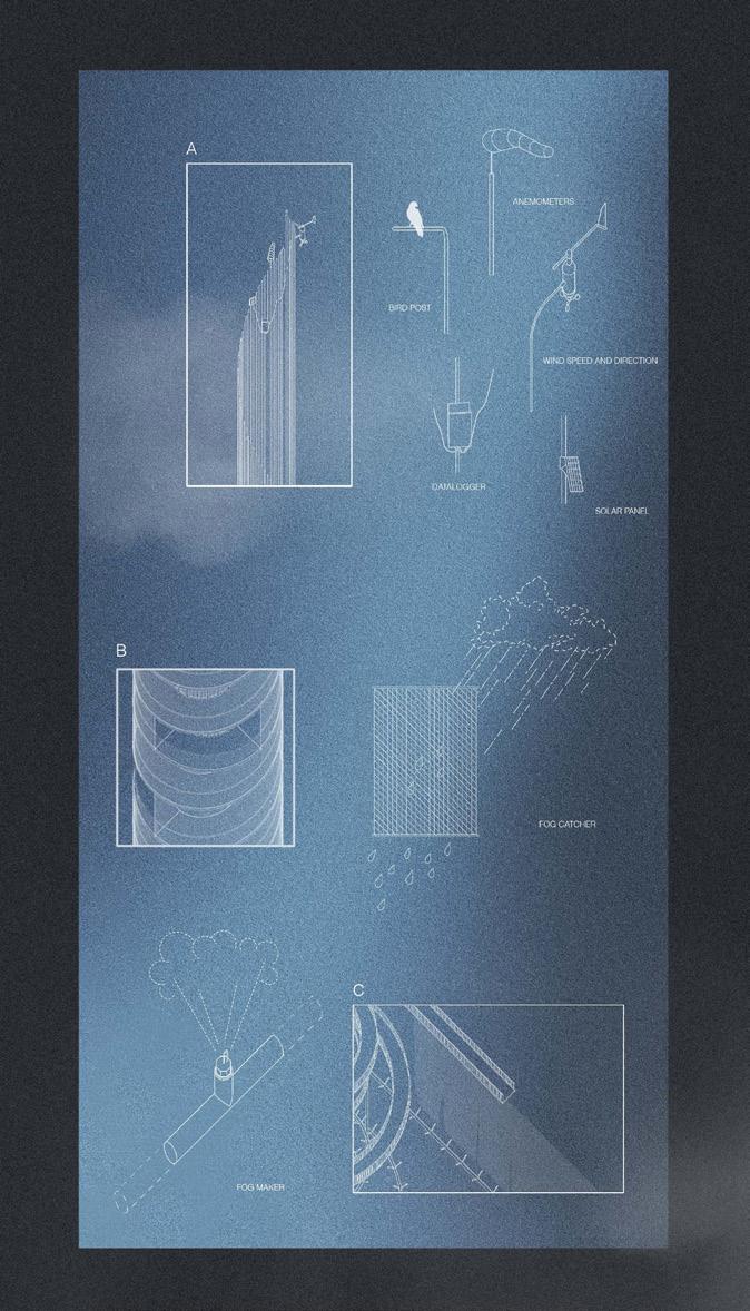 This project consists of two components: a tower that emerges out of the fog, acting as both a weather forecasting tower and a watchtower, and a spa submerged within the fog.