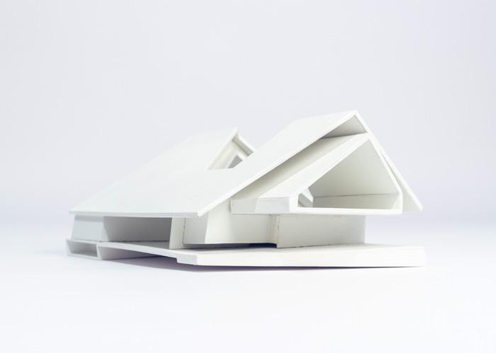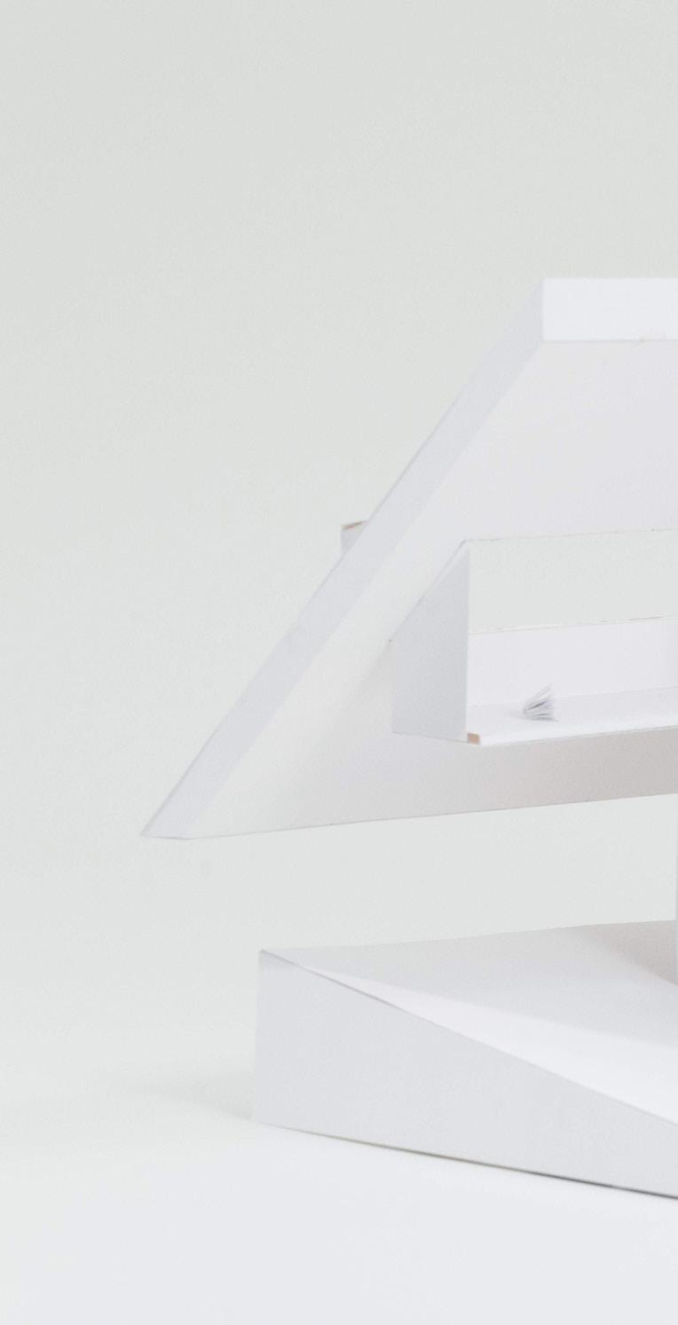 A cohesive, and coherent solid is developed that is equally interested in its negative space as its positive space. The form is complex in its simplicity through an aesthetic composition that achieves complexity through its illusions. The form strives to be evocative, while at the same time upholding a rigid sense of economy.