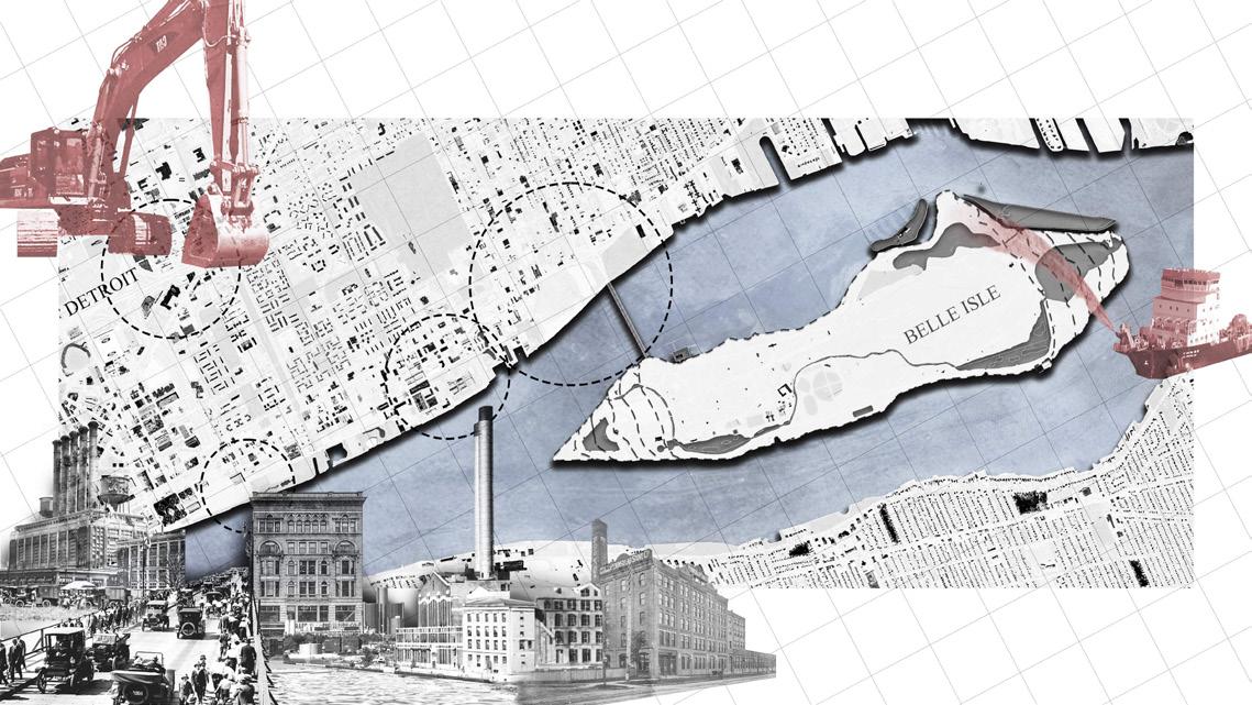 Detroit’s riverfront is plastic; molded by human processes and constantly changing. Detroit continues to undergo manipulation of waterscape and landscape at a large scale. Nowhere is this more evident than in the vast expanses of vacant land, constituting a third of Detroit, a city carved by building demolitions and characterized by the prevalence of artificial fill. Rather than concealing these transformations, a shift in perspective is proposed—one that seeks to celebrate the very artificiality that defines Detroit’s evolving identity.