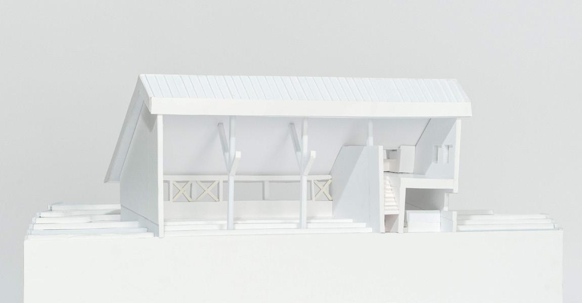 The third operation is the shifting of the roof diagonally that is also translated down to the entry and the exit. A moment of pinch is created that relaxes as you enter or exit.