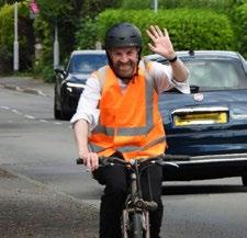 The event concluded successfully, with Cllr Derek Wall acting as the back marker to make sure no one was left behind. Riders were greeted with applause and refreshments as they returned. (Photo: Cllr Derek Wall crossing the finish line with the last group of cyclists.)