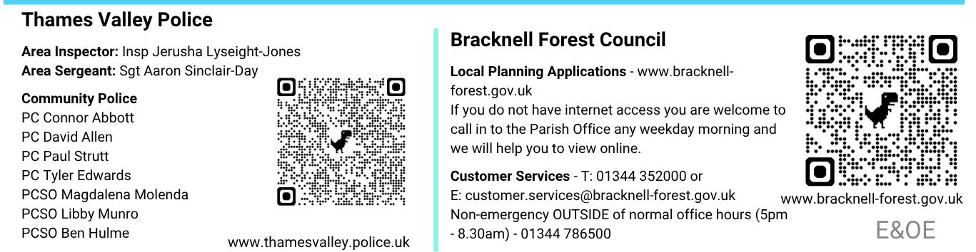Finally, may I wish you, our Winkfield residents, a very Happy Christmas and a very peaceful 2026.